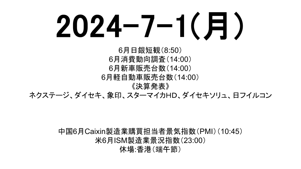 米6月ISM製造業景況指数(23:00)