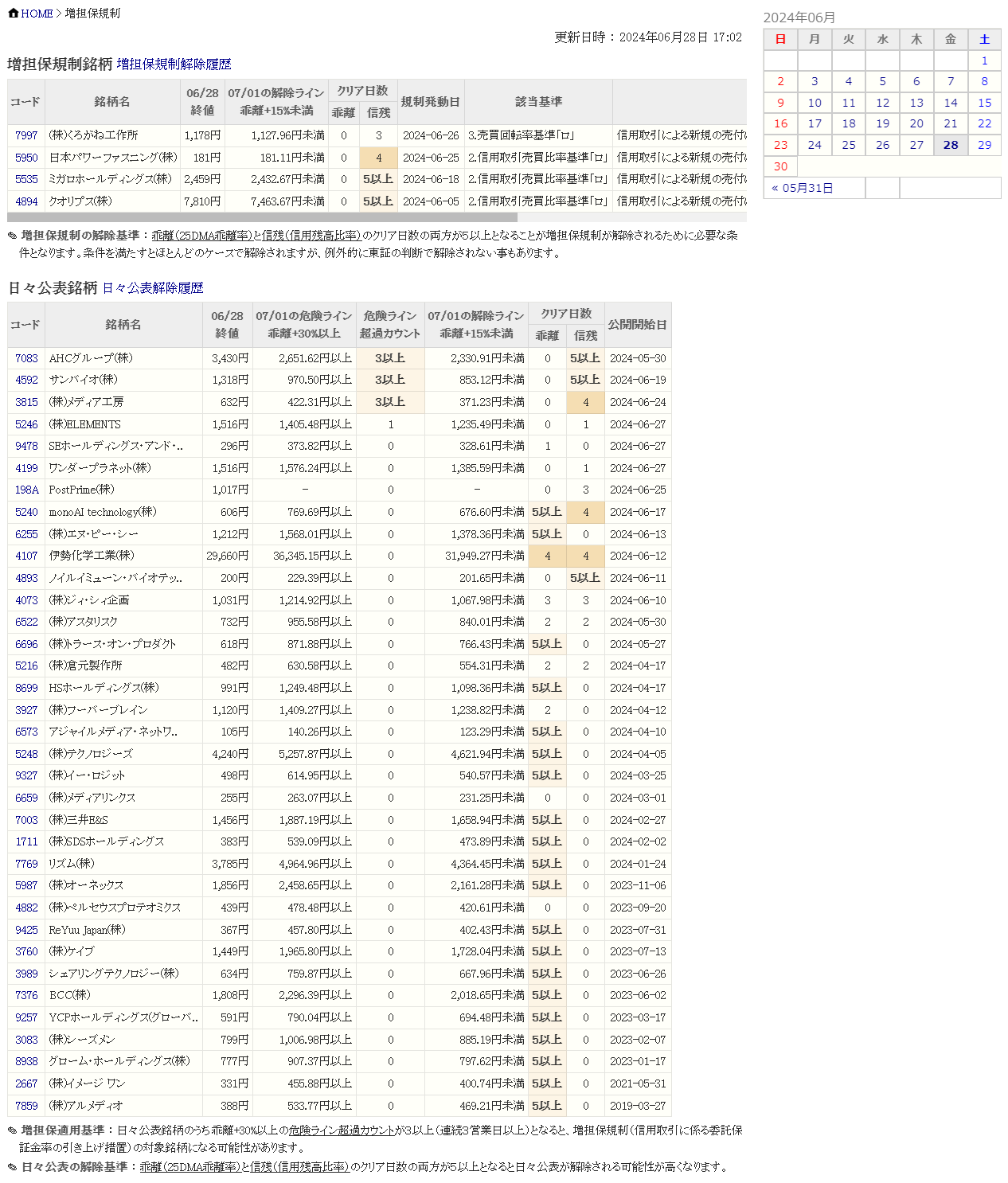 増し担保解除ライン&日々公表