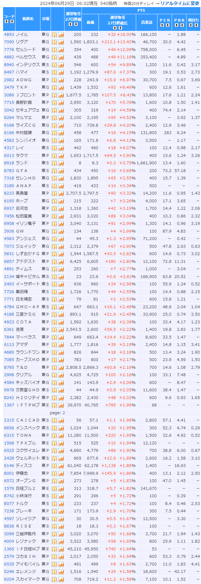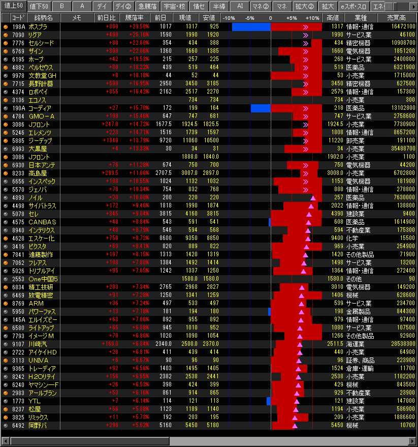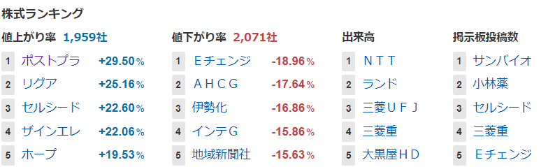値上がり率ランキング