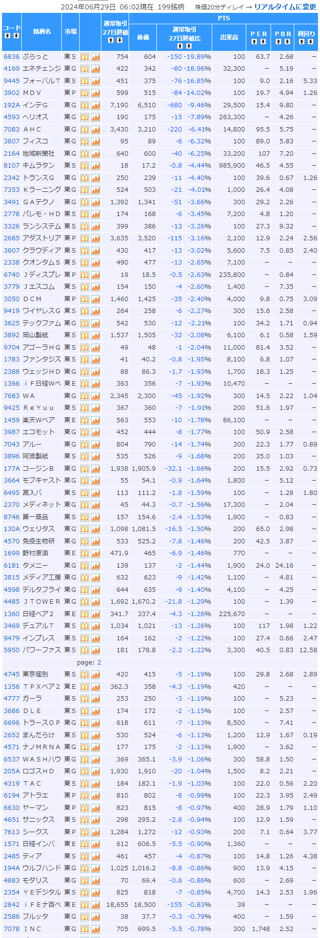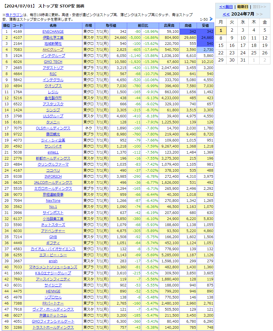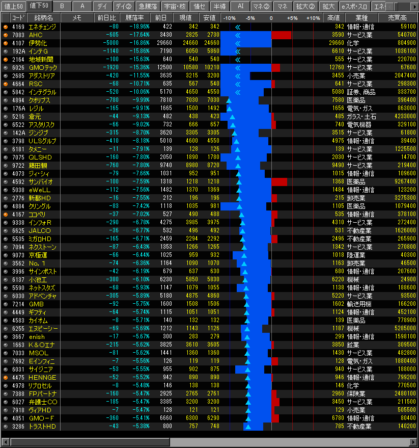 値下がり率ランキング