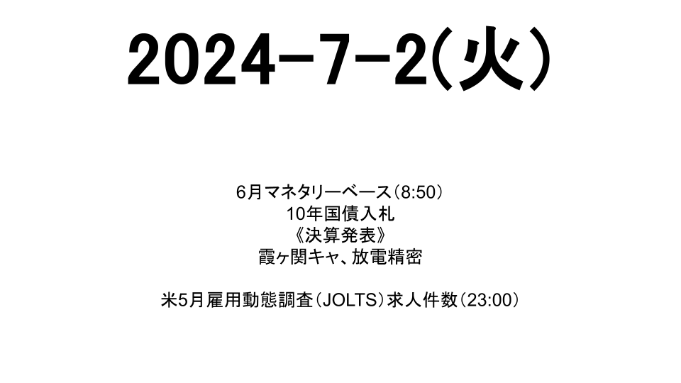 米5月雇用動態調査(JOLTS)求人件数(23:00)