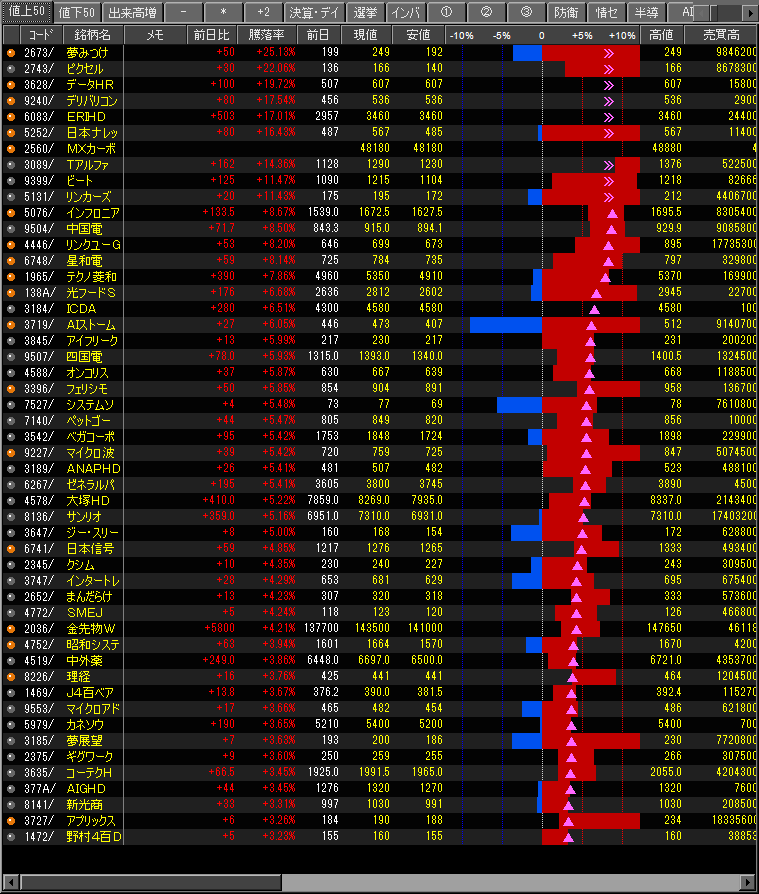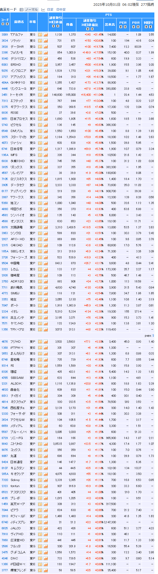 ・時価総額と手垢がついてないと思ってたので、昨日のptsでの出来高を見て少し不安やったんですけど超絶上髭でした