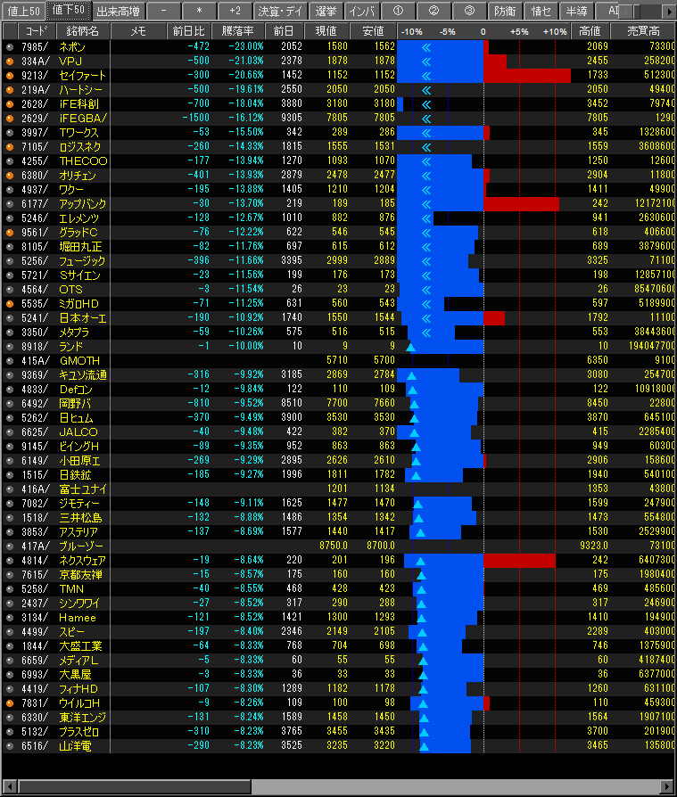 ・基準値からだとアト200は下がるので、引け間際、ホールド中の30株を成り売りしたら1株約定