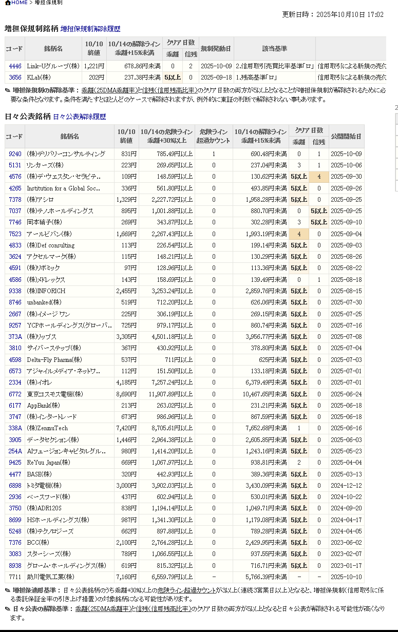 増し担保解除ライン&日々公表