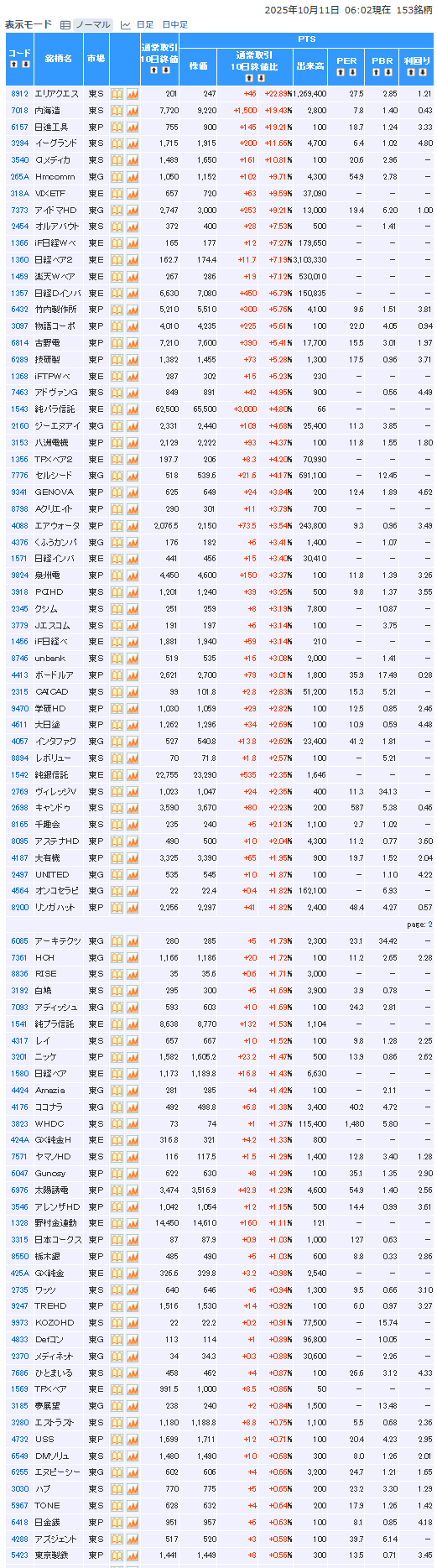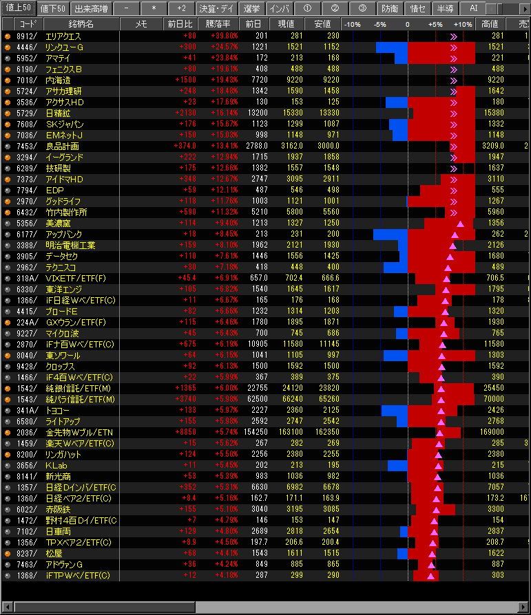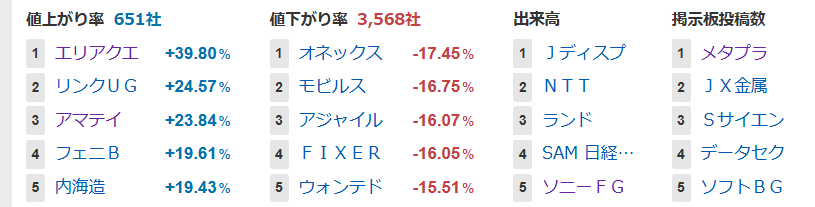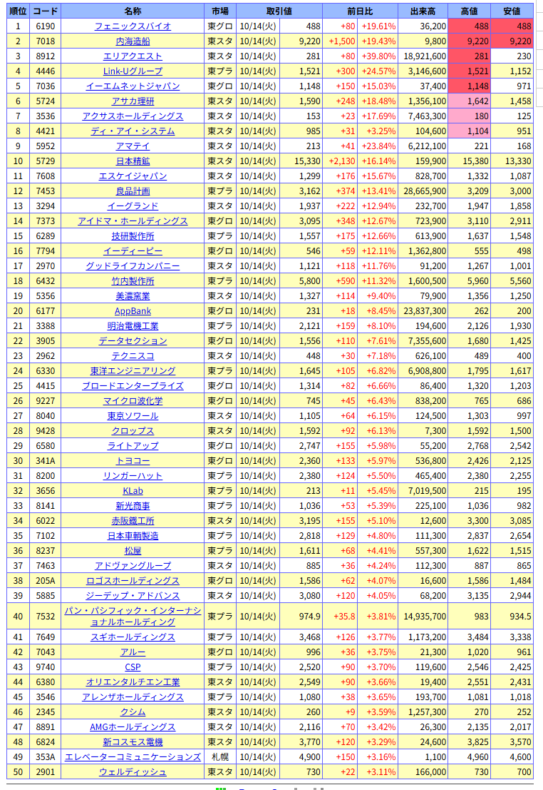 値上がり率ランキング