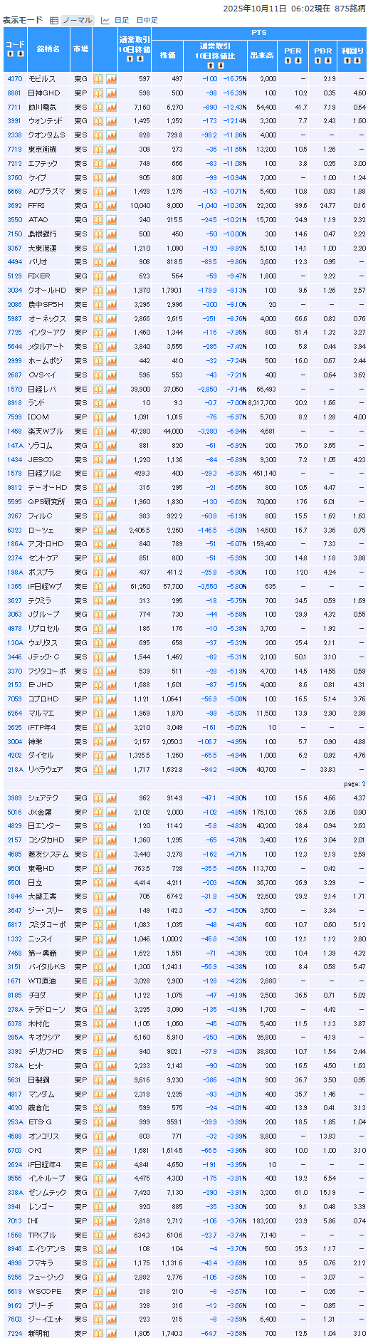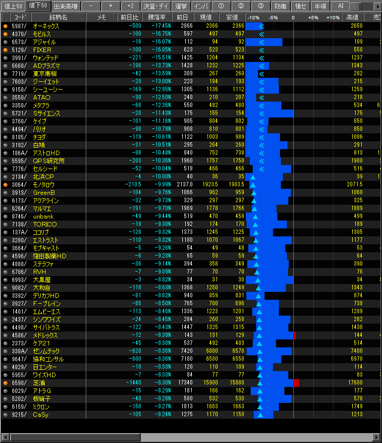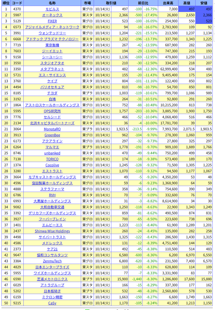 値下がり率ランキング