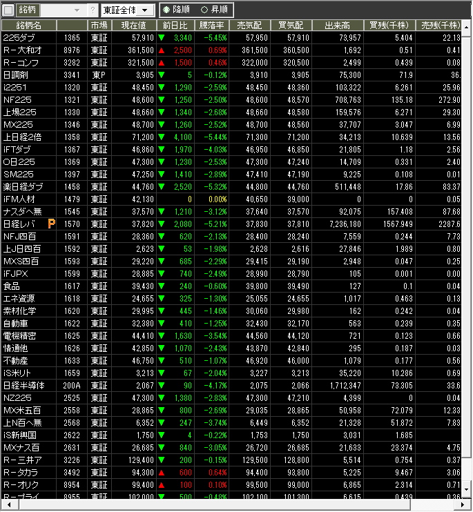 当日のザラ場指数