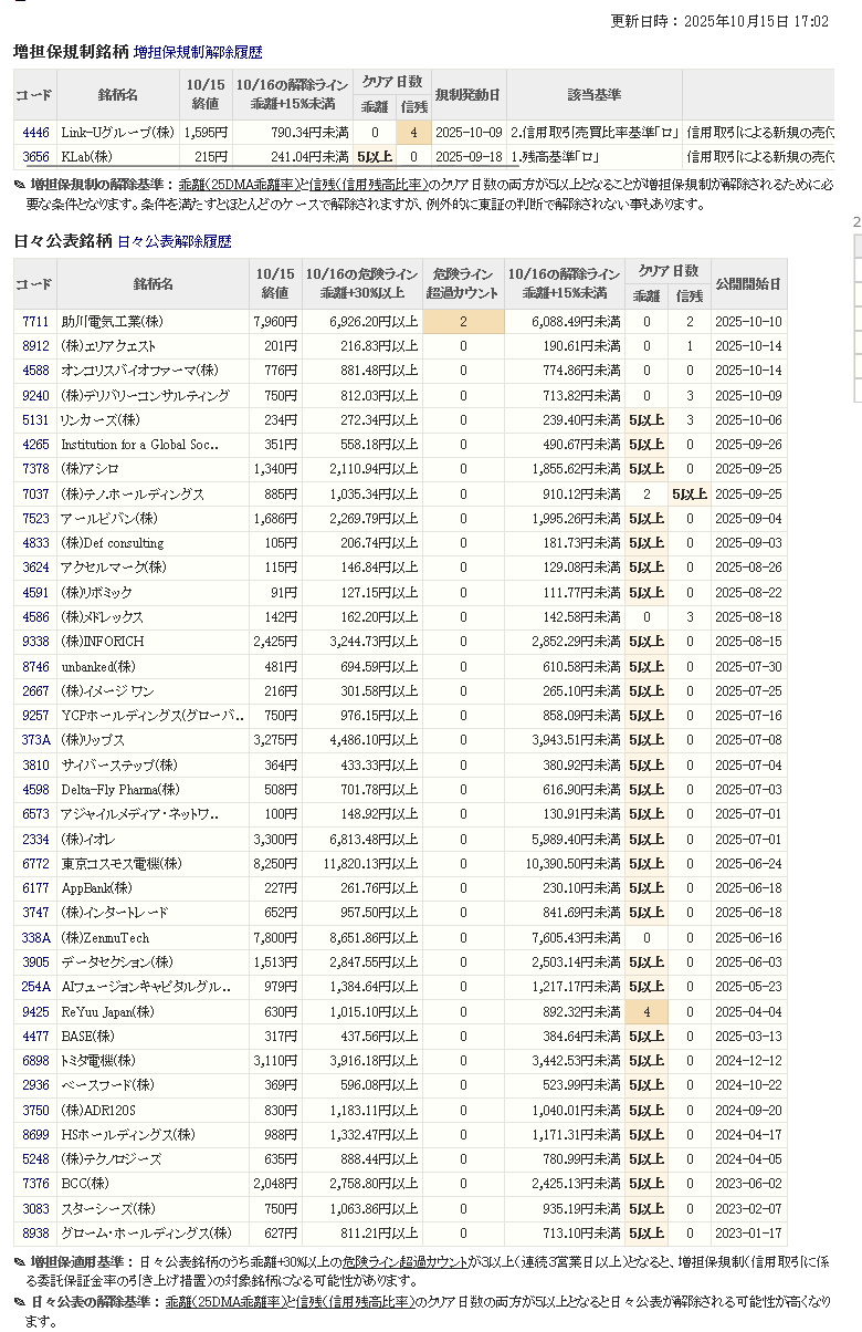増し担保解除ライン&日々公表