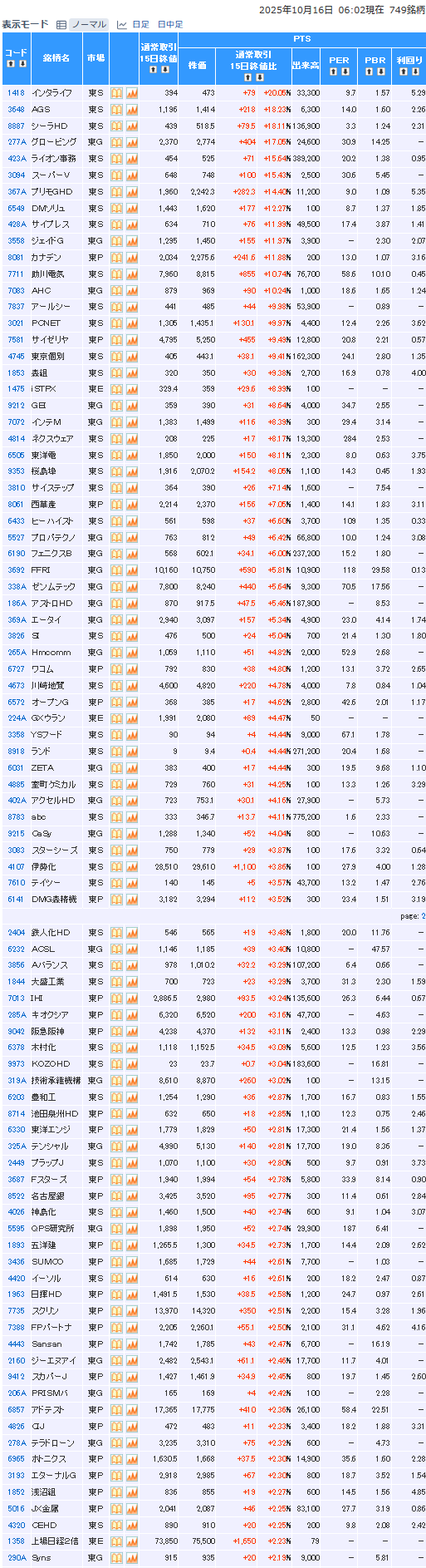 前日pts