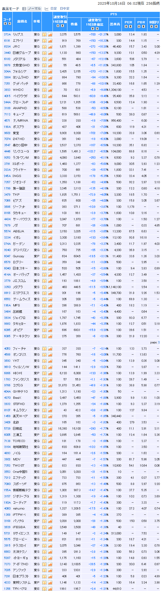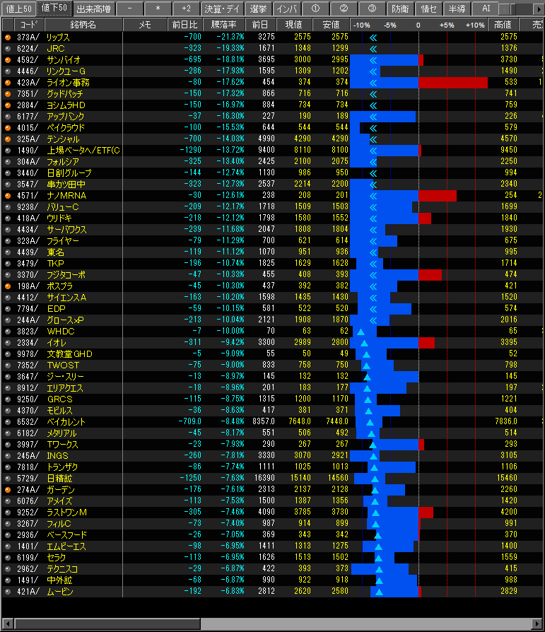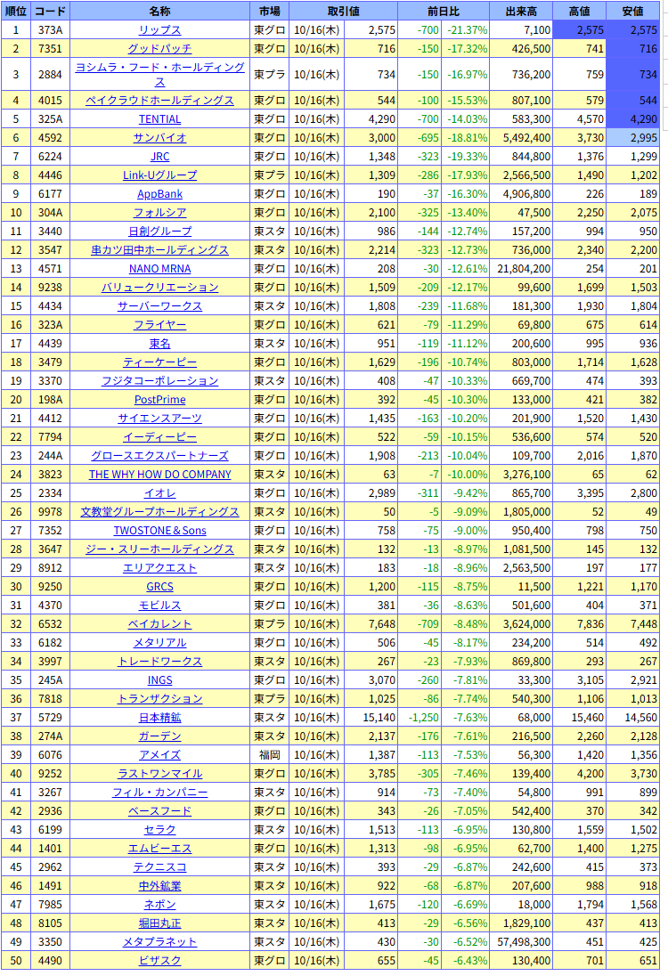 値下がり率ランキング
