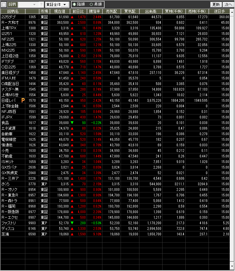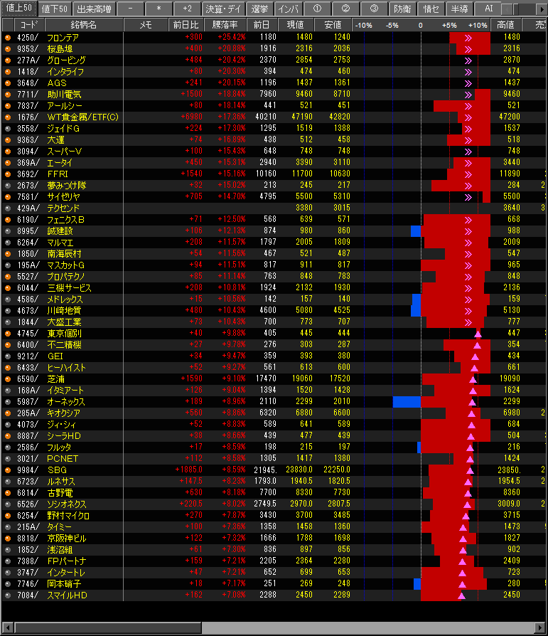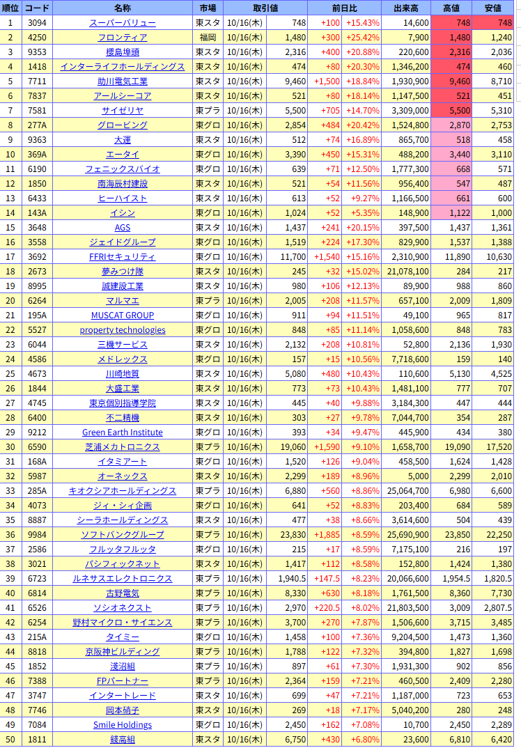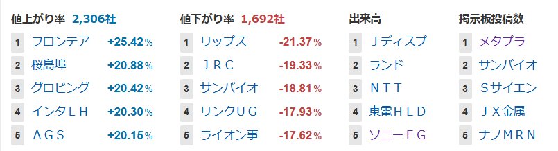 値上がり率ランキング