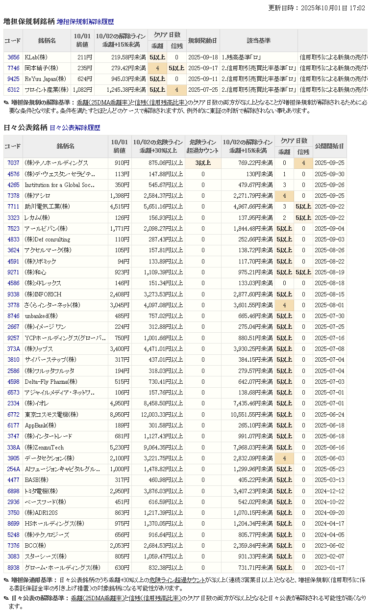増し担保解除ライン&日々公表