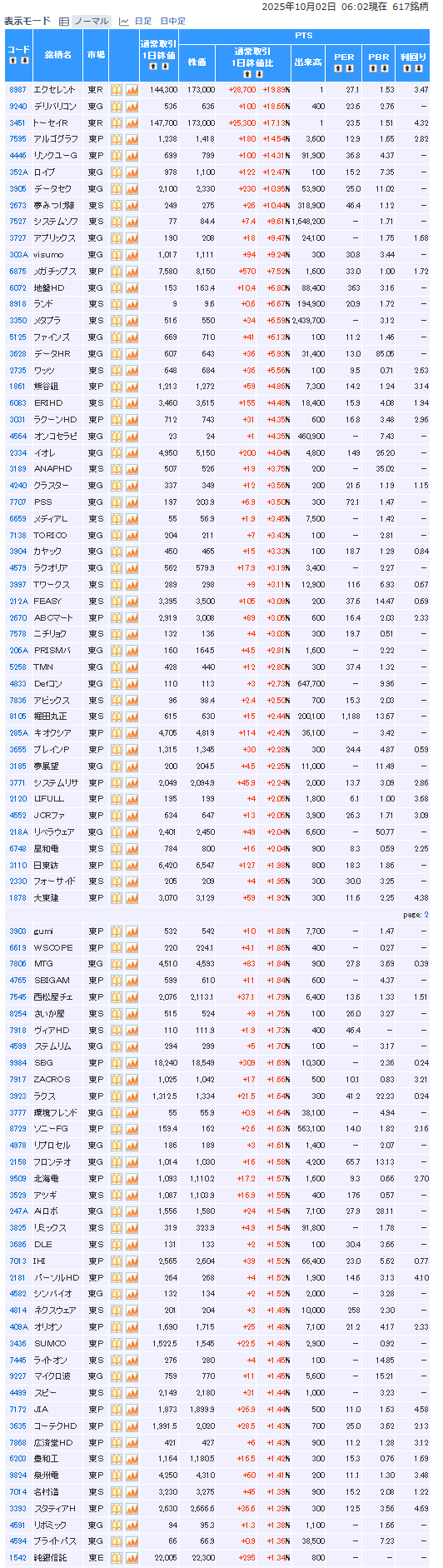 前日pts