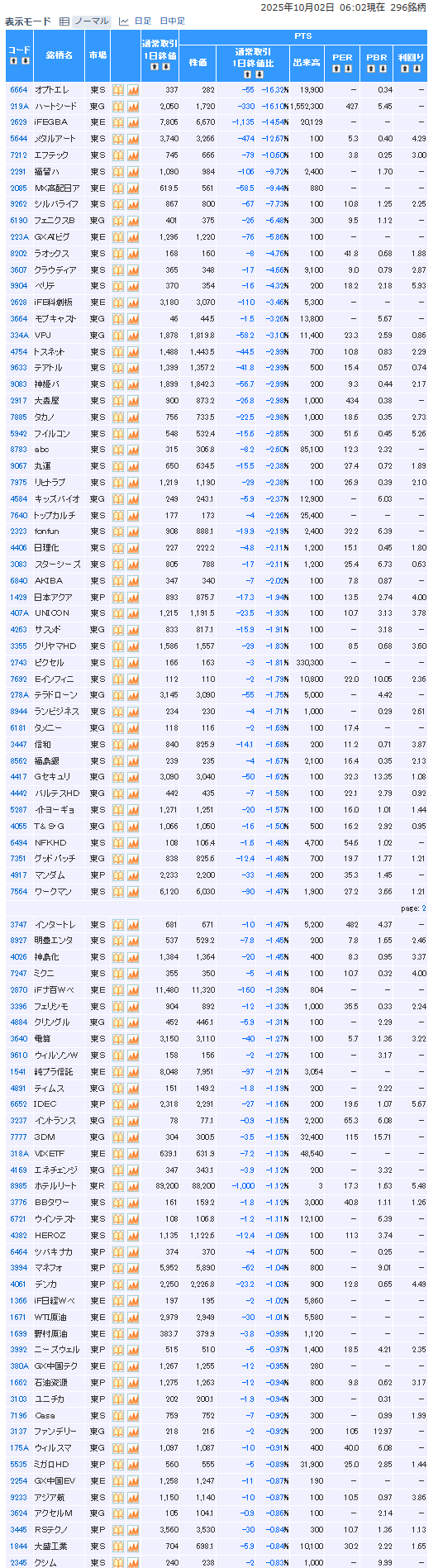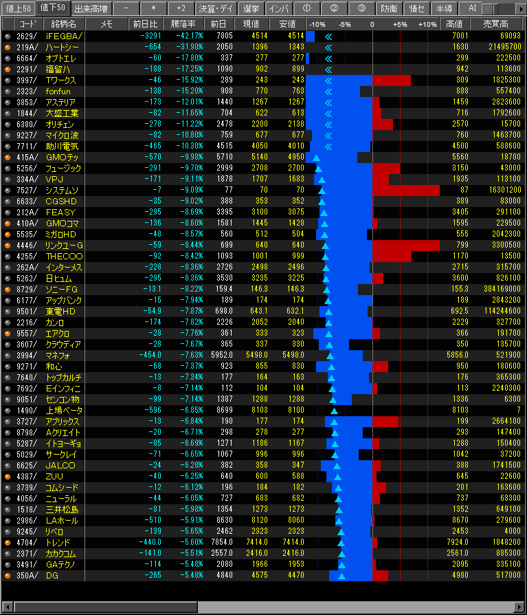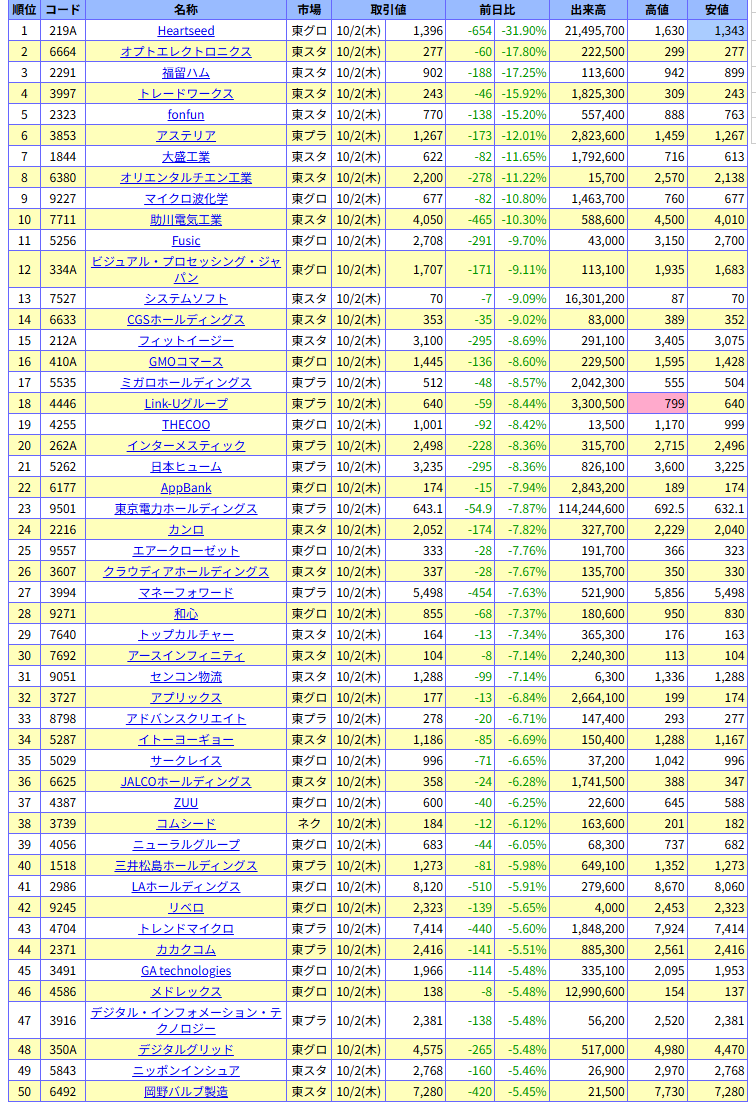 値下がり率ランキング