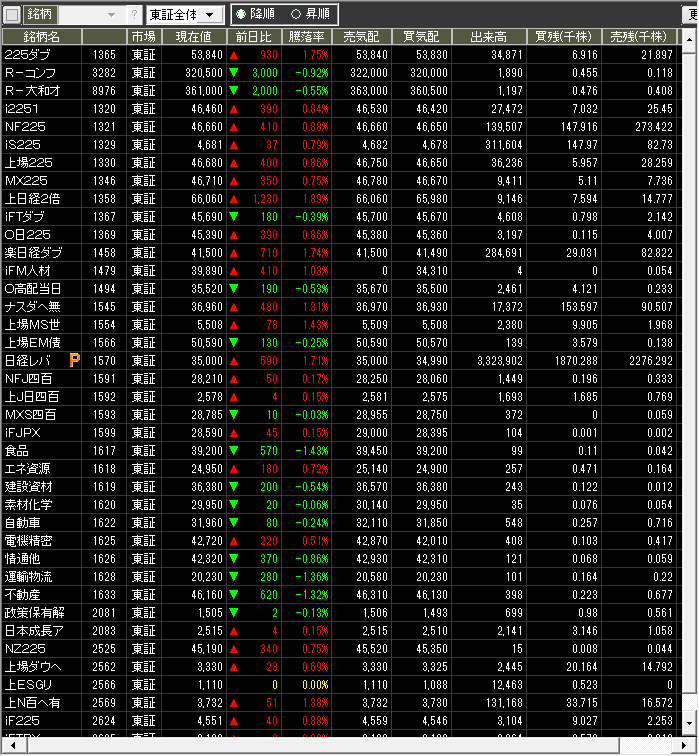 当日のザラ場指数