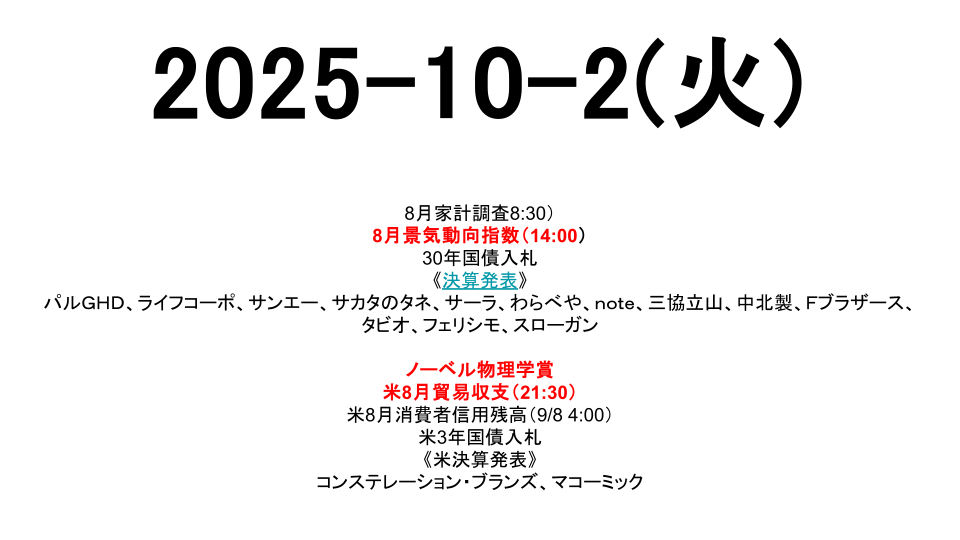 9月消費動向調査(14:00)