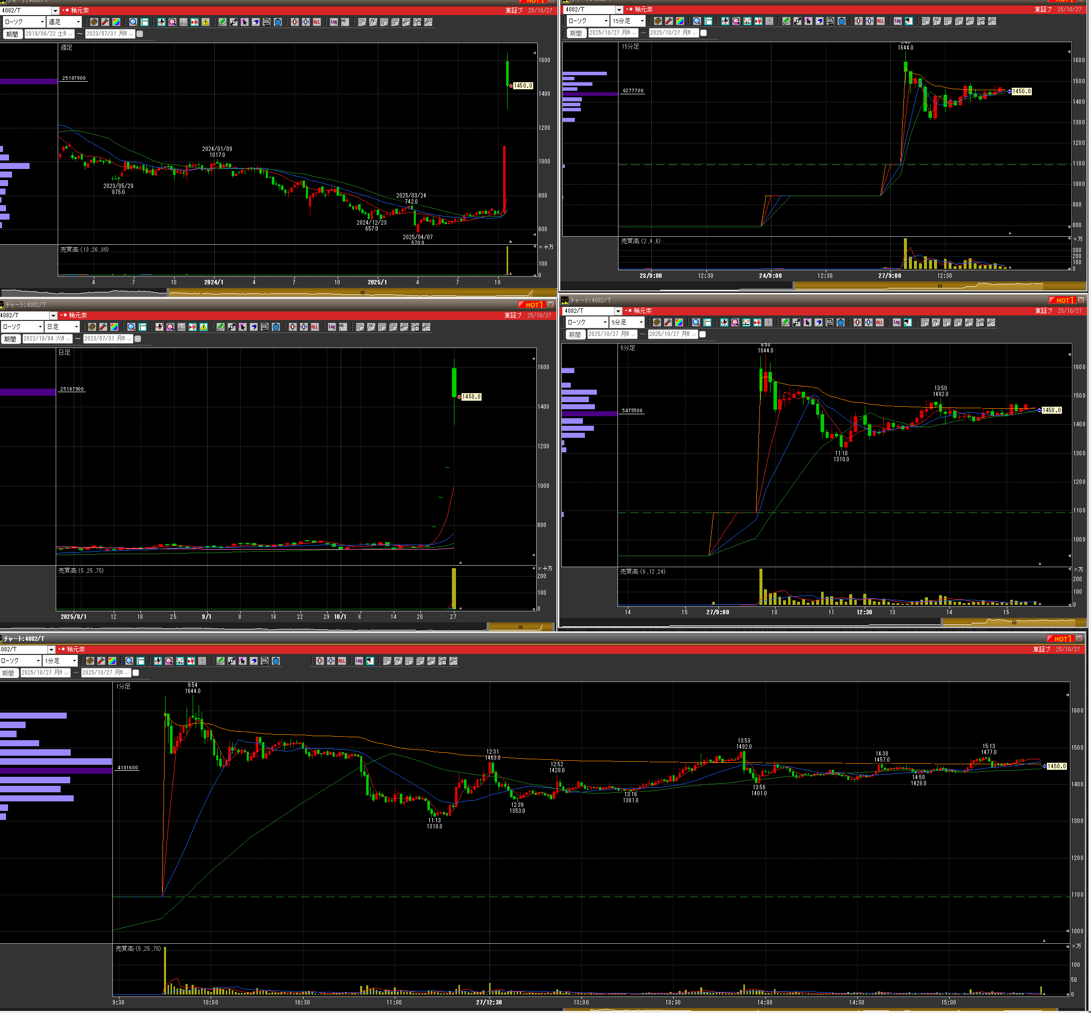 ・寄り付きに信用分1000株を決済➡そこからグングン上に上がっていき売った所から50円上に💦
