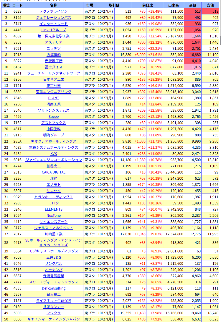 キヤノン、日東電、塩野義、コーエーテクモ、マクニカHD、太平洋、メタウォーター、ホギメディ、ナガセ、SBIGアセット、LITALICO、綿半HD、正興電機、ディーエムエス、SANEI、美樹工業、日パレット、植松商