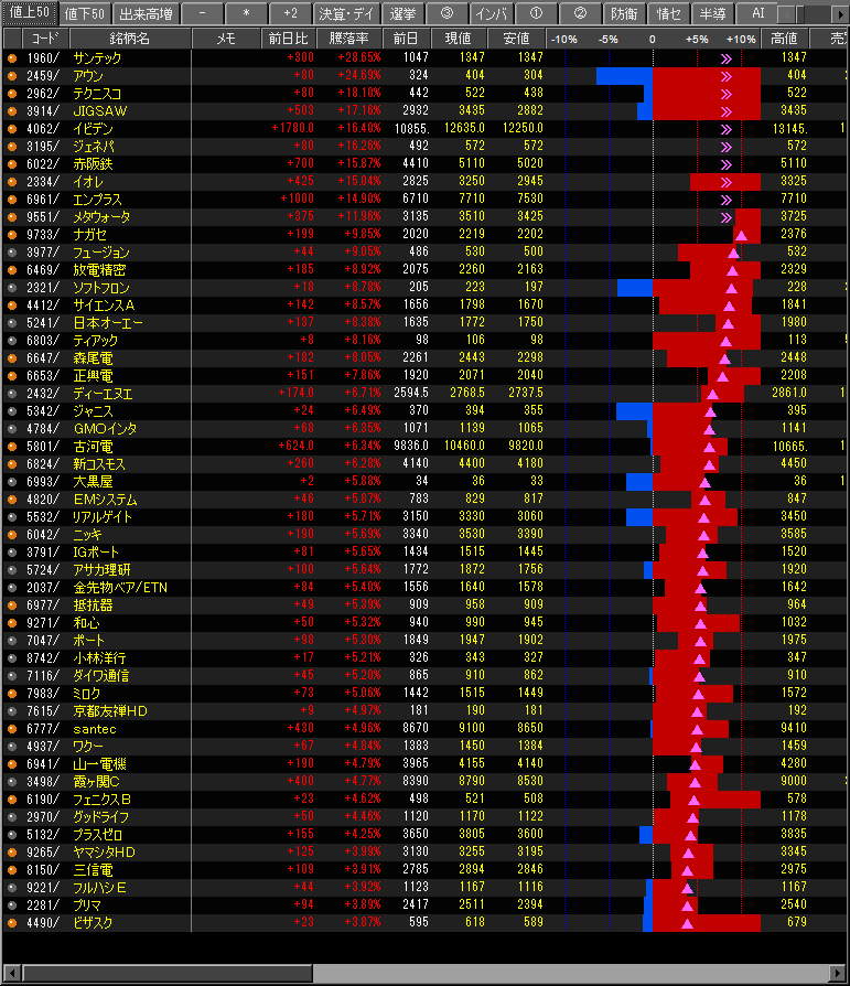 その割には後場総崩れしてる中、高値圏で終了というところ