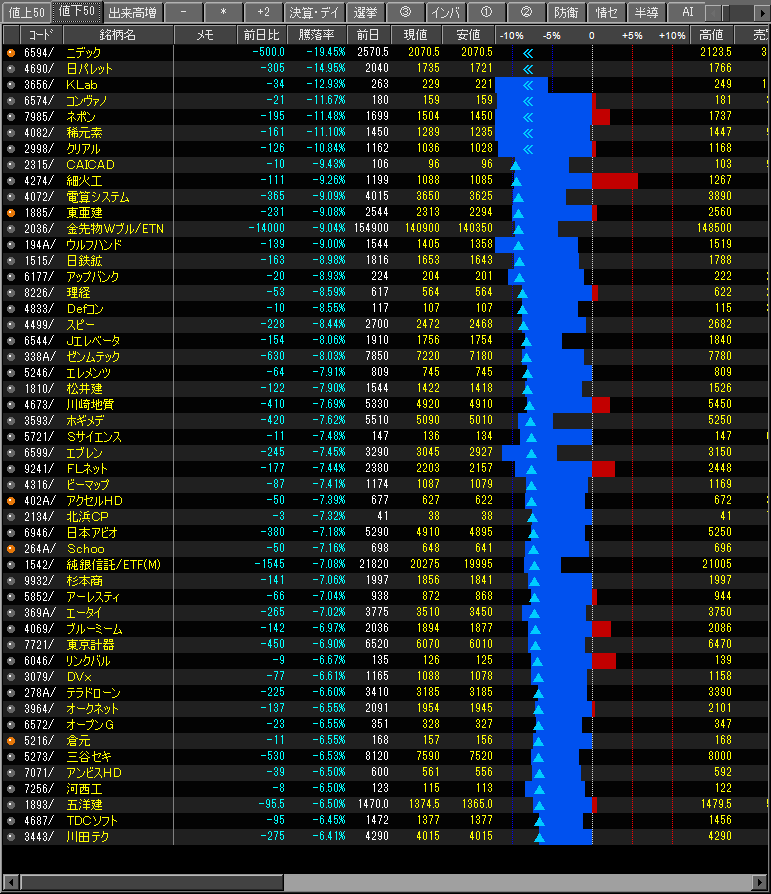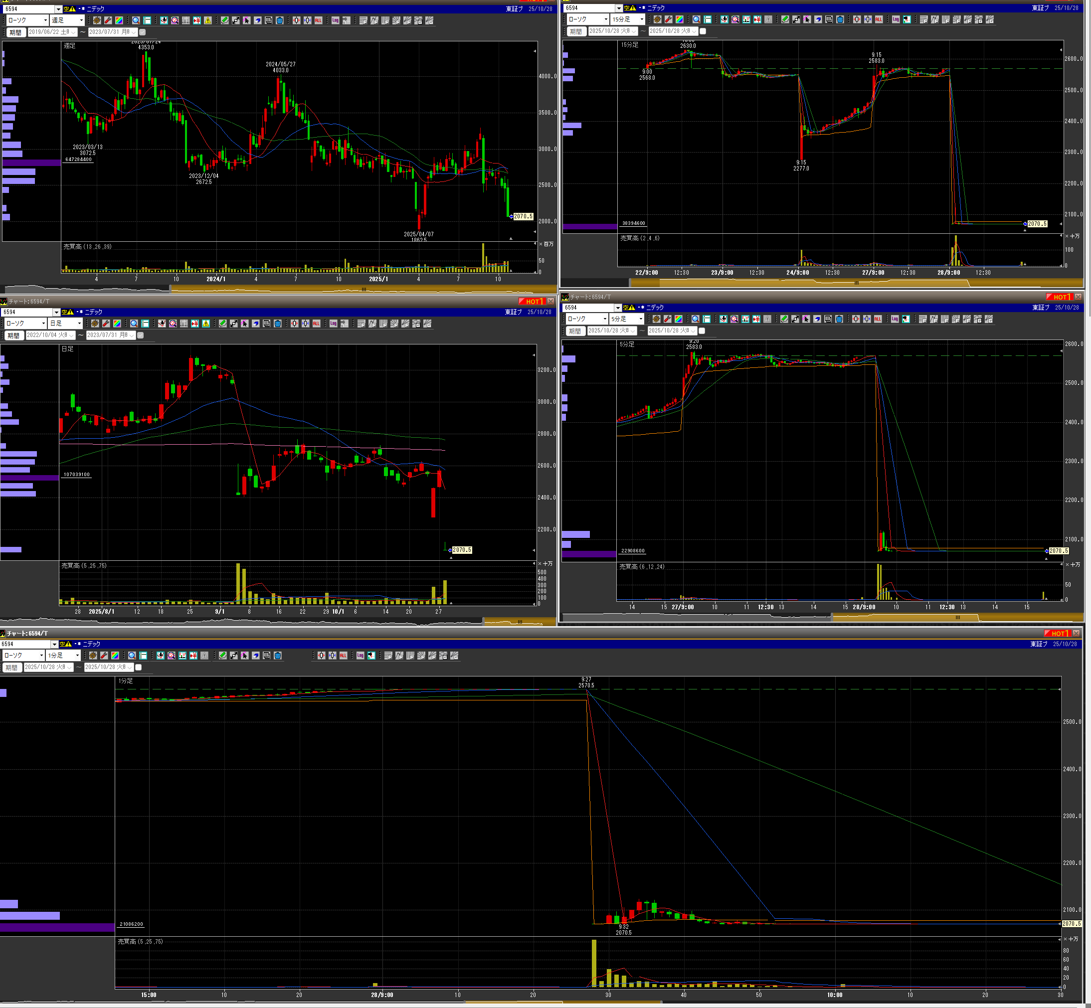 ・ストップ安突撃するつもりやったんですけど、300万株の蓋があったのでいったん他を監視➡その間に喰われて何度か反発後にストップ安でフィニッシュ