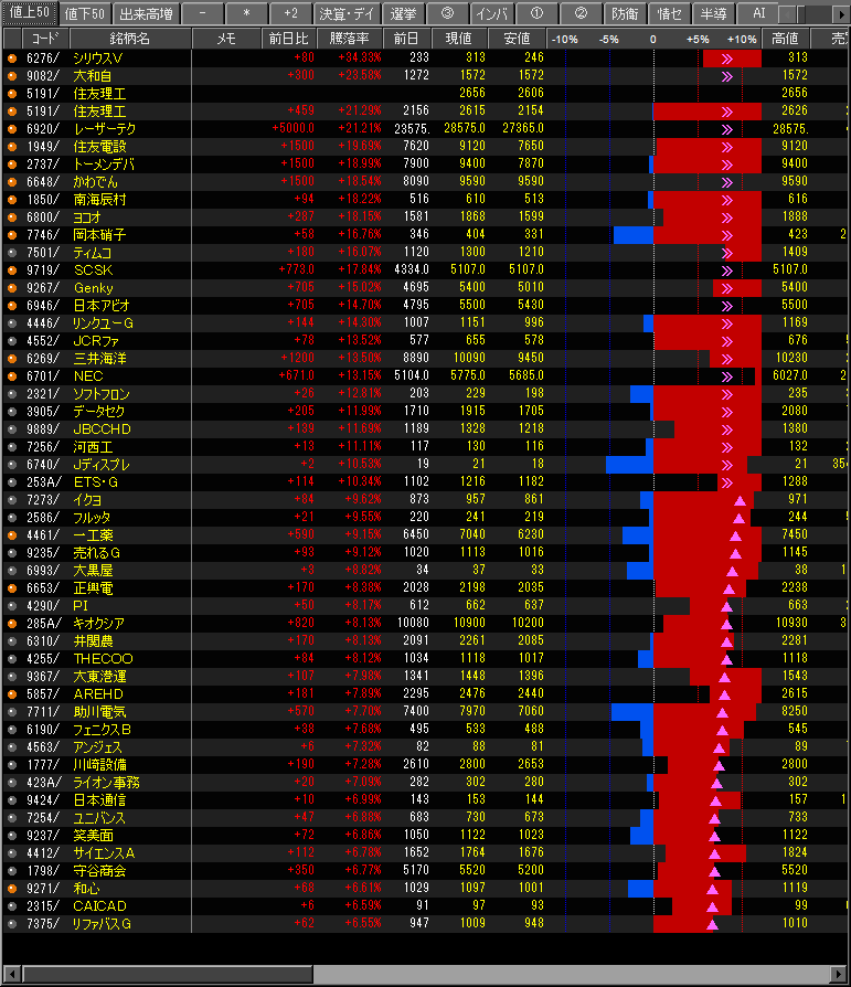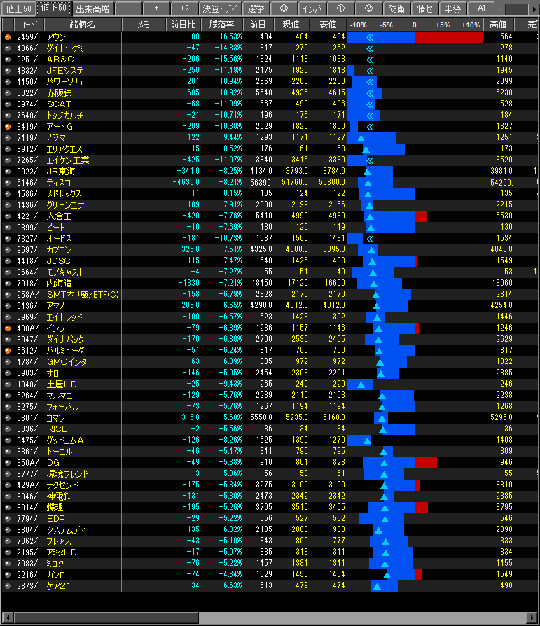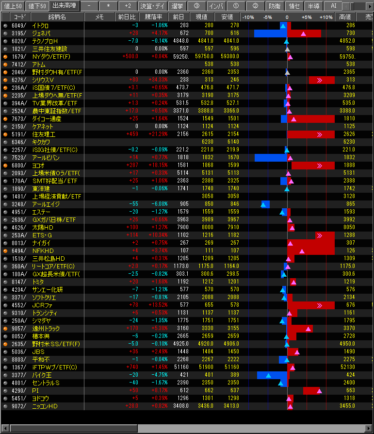 ・後場引けにかけて高値を狙ってくると我慢(その間、何度か+圏に)してましたが、結局ブレイクせず