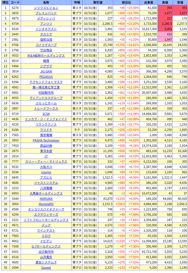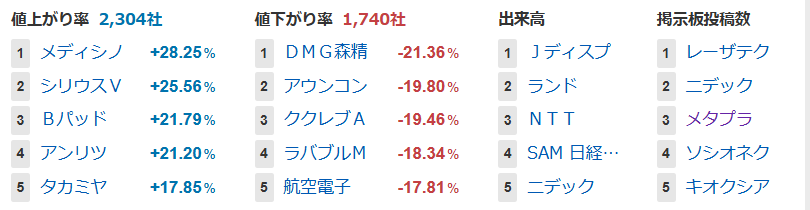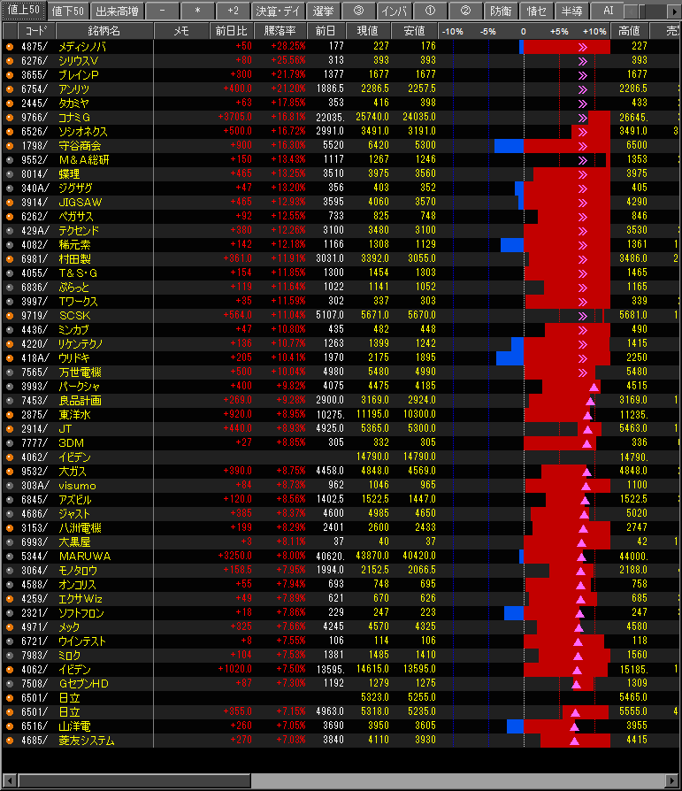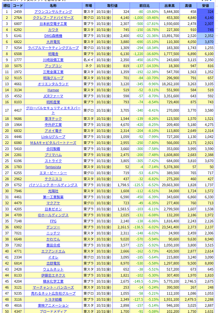 東エレク、三菱電、HOYA、第一三共、デンソー、村田製、豊田織機、住友商、豊通商、大塚HD、TDK、ファナック、住友電、SBI、レーザーテク、アイシン、マキタ、スクリン、三菱ケミG、特殊陶、ZOZO、東洋水産、TIS、大塚商、大東建、住友林、東京メトロ、三和HD、ガイシ、九州電、住友ファーマ、京成、TOTO、ミスミG、大和工、オルガノ、Jパワー、ソシオネクスト、クラフティア、テクノプロHD、LIXIL、豊田合、コカコーラBJH、ジェイテクト、スタンレ電、トヨタ紡織、ナブテスコ、ニフコ、住友重、山九、日電硝、三菱倉、アルプスアル、中国電、マブチ、南海電、牧野フ、NSD、フクダ電