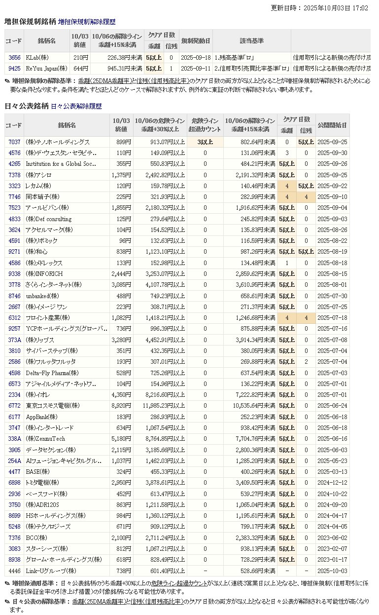 増し担保解除ライン&日々公表