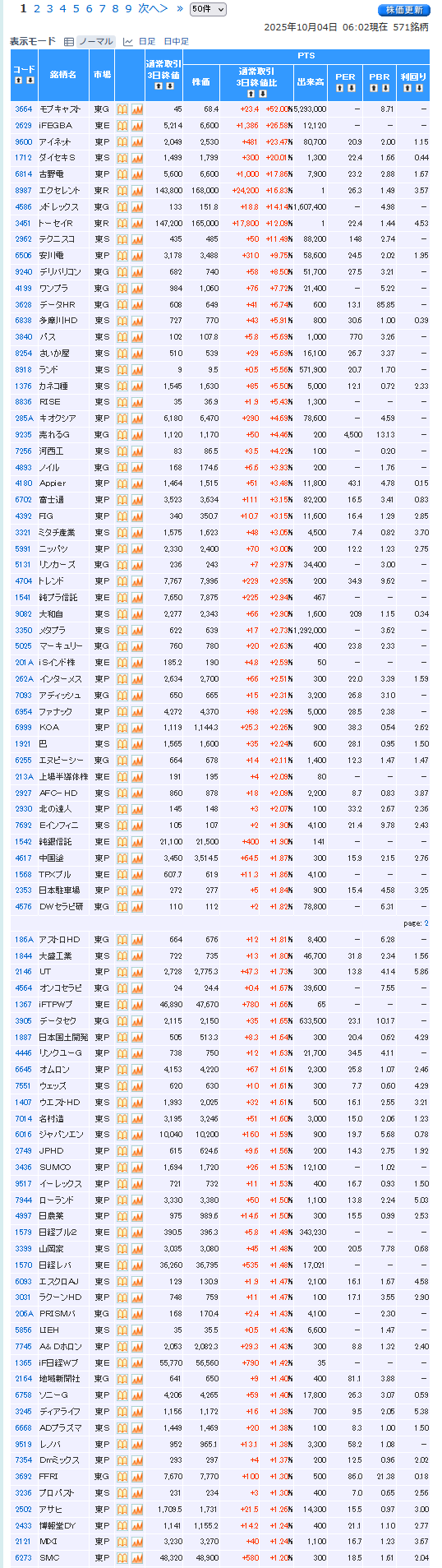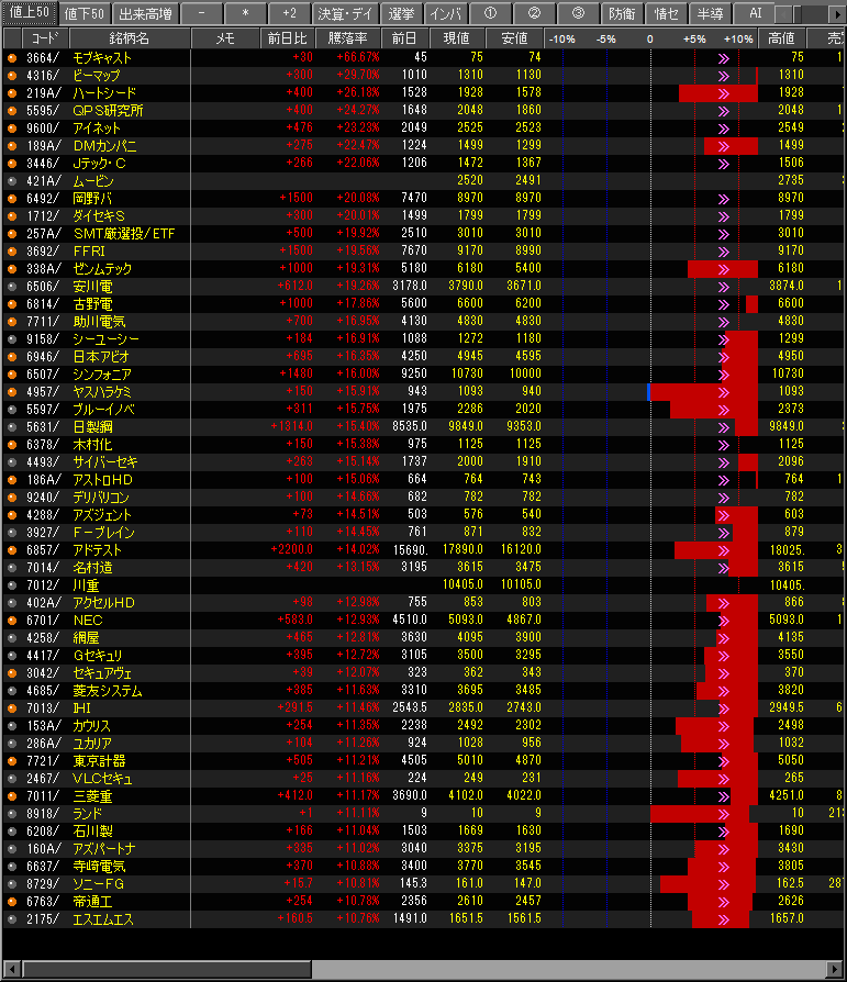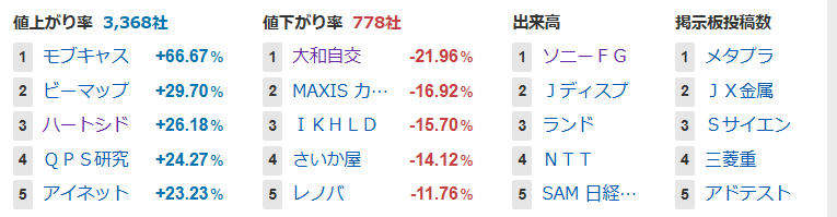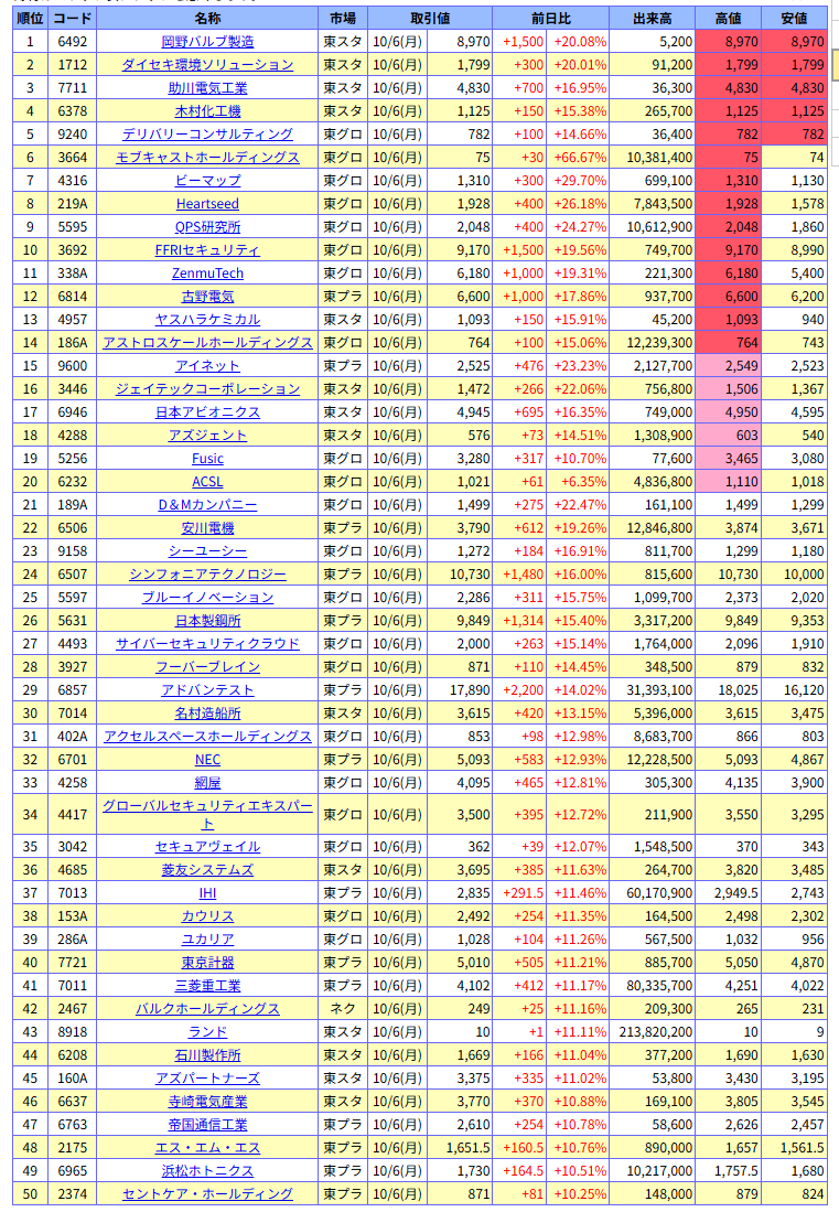 値上がり率ランキング