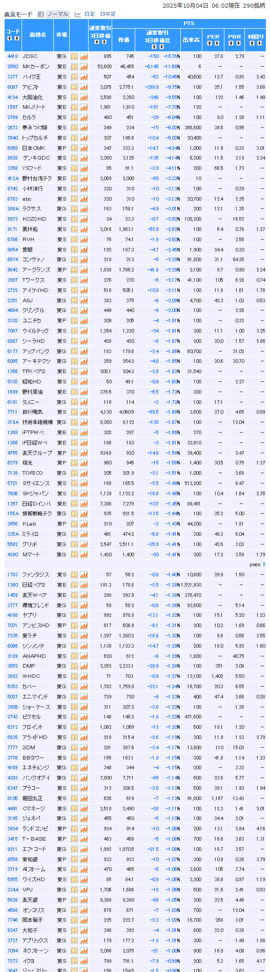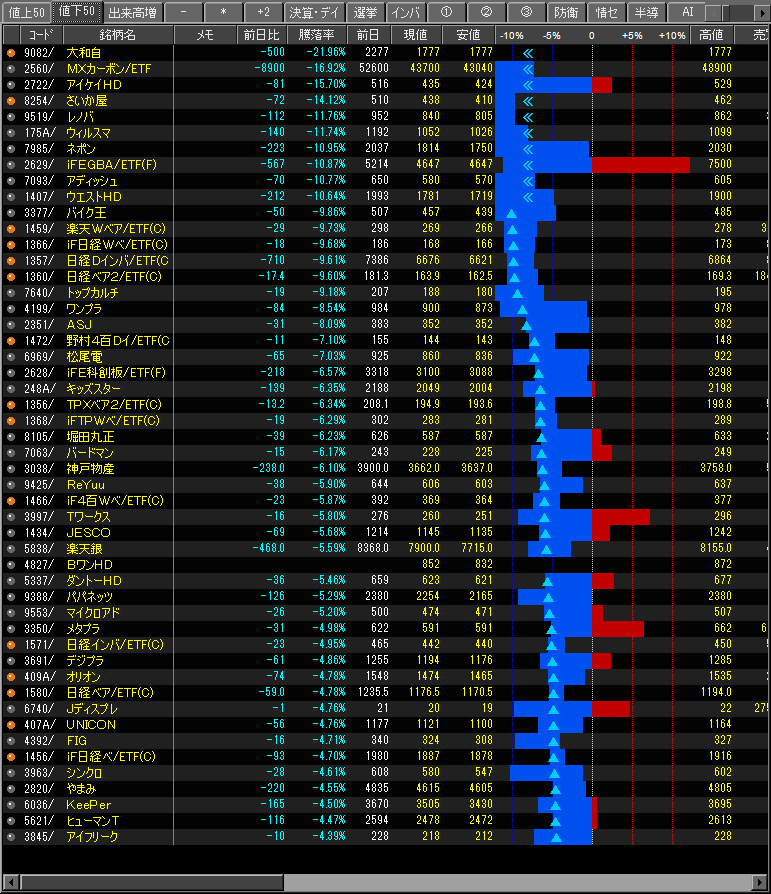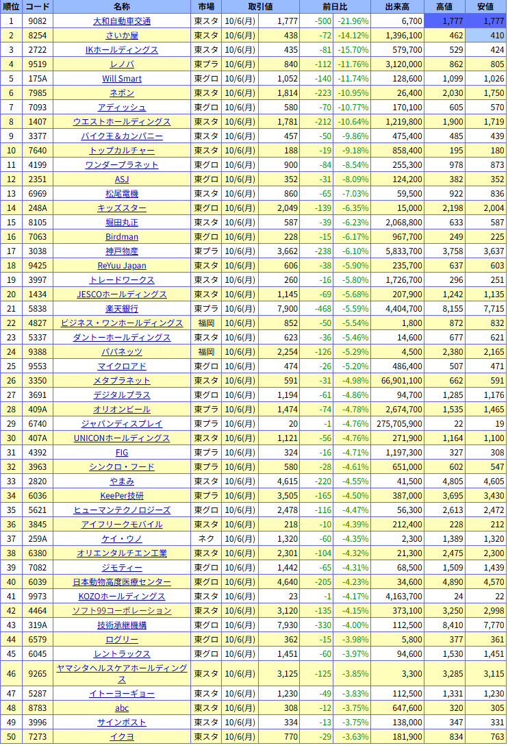 値下がり率ランキング