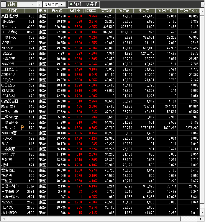 当日のザラ場指数