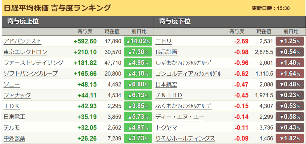当日値上がり数/値下がり数