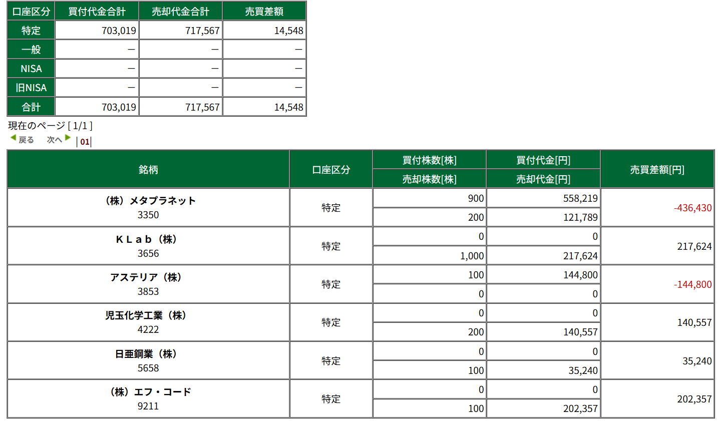 先週、追加した1000株りかく