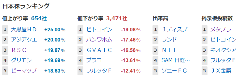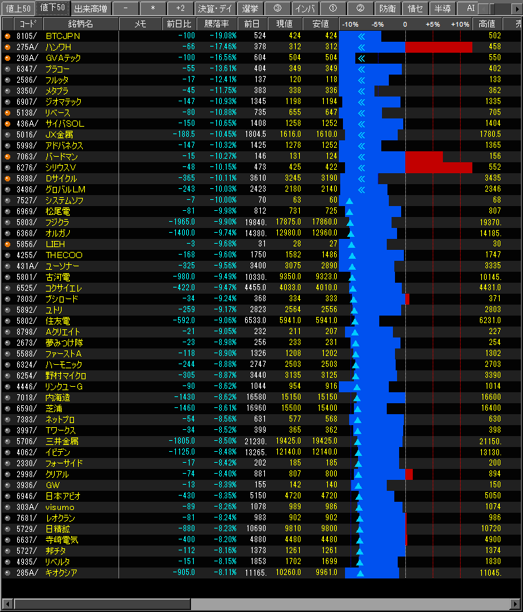 ・昼間寝て起きたら、ほとんどの銘柄が暴落していたので慌ててリカク➡天井からマイナス200