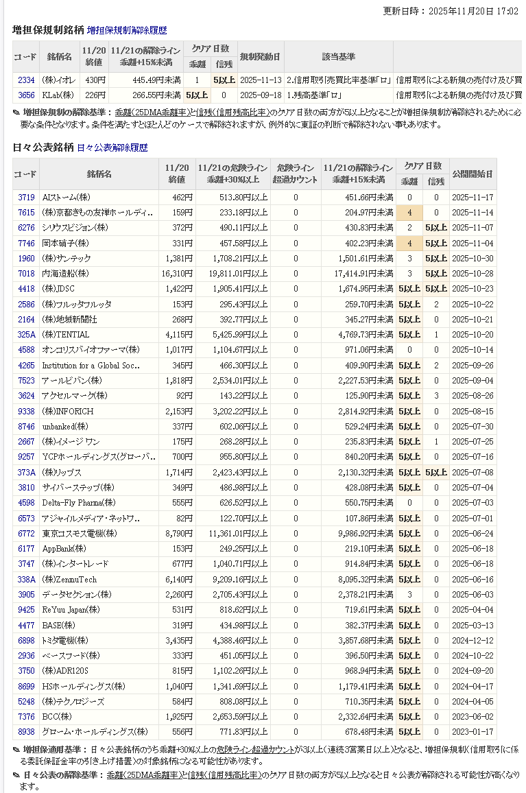 増し担保解除ライン&日々公表