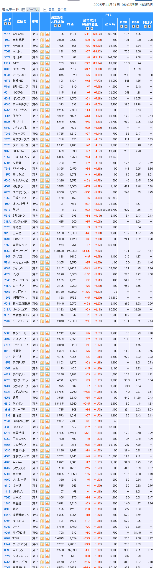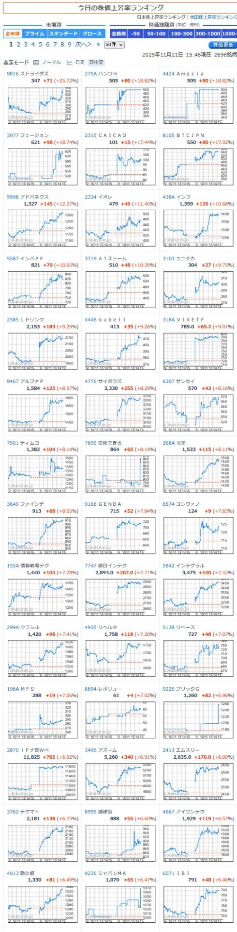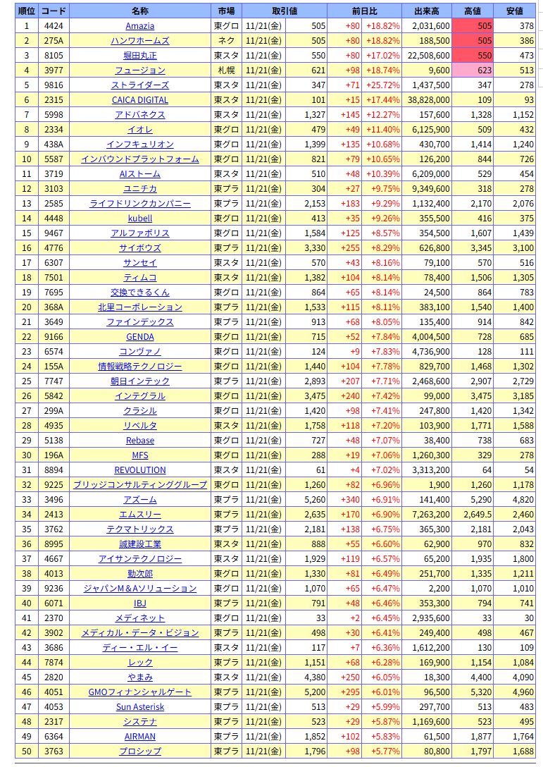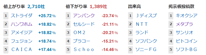 値上がり率ランキング