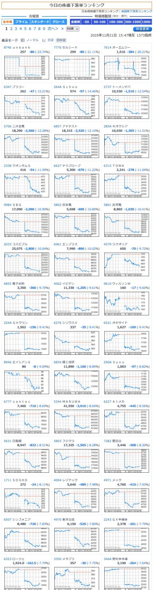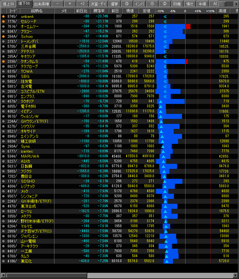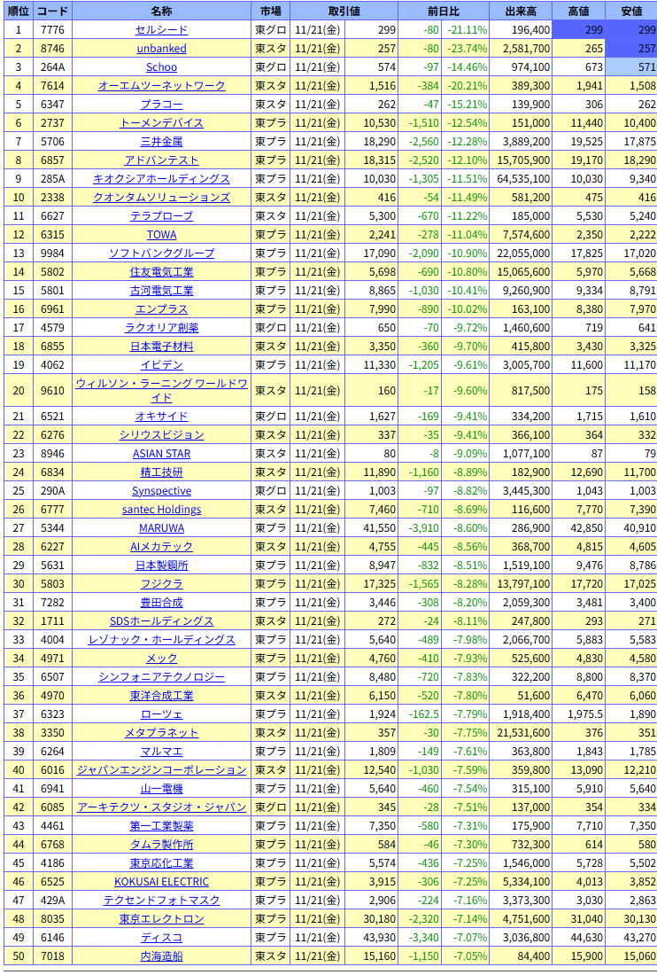 値下がり率ランキング
