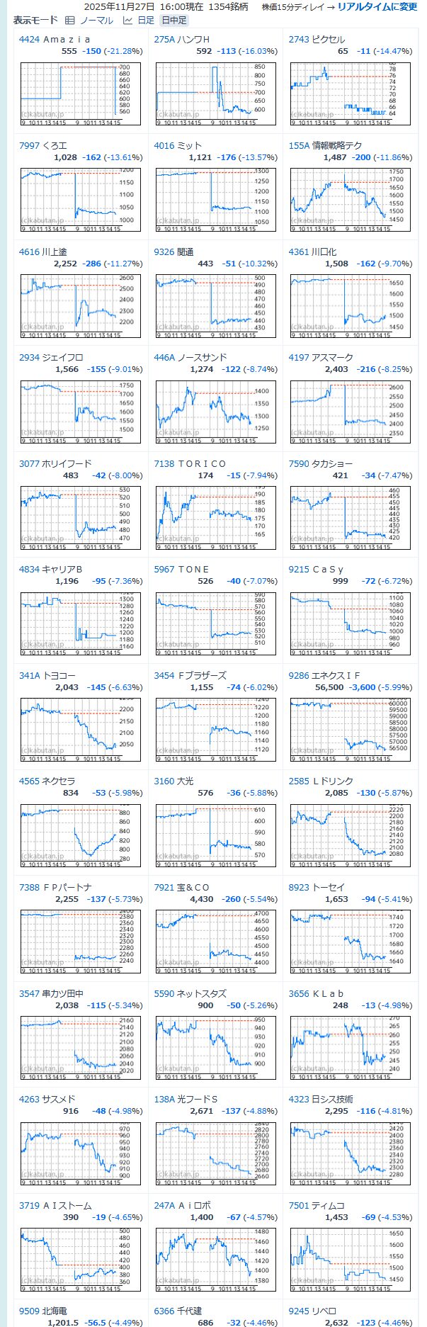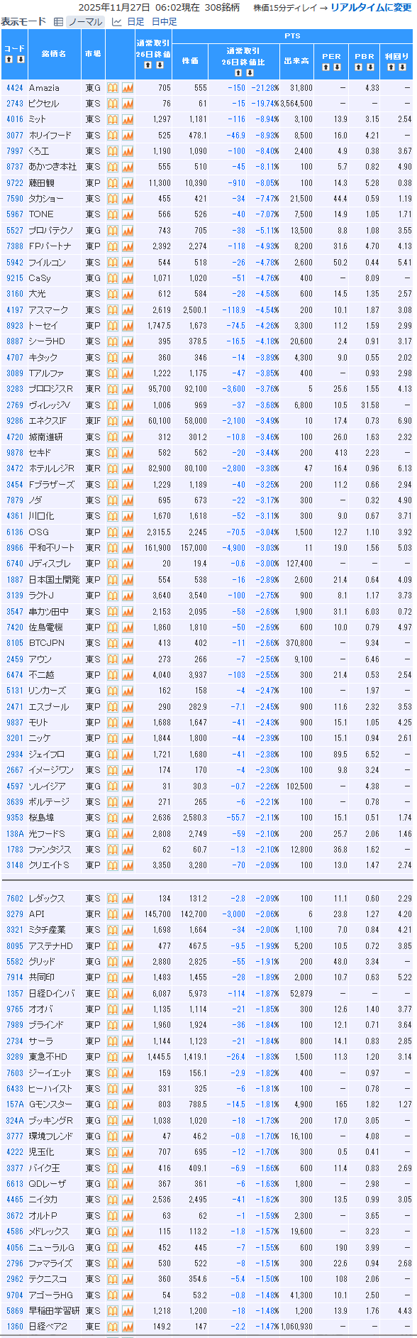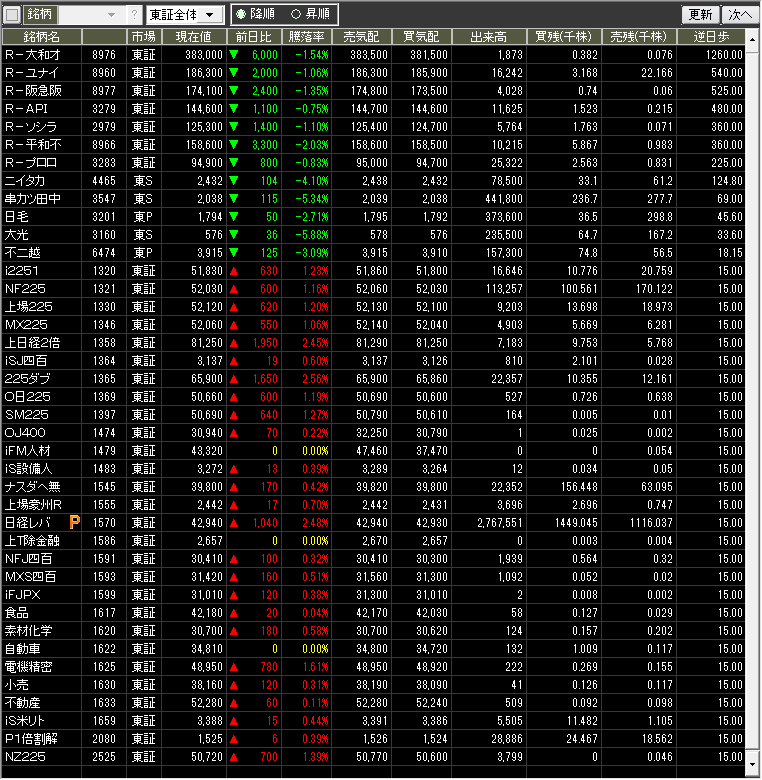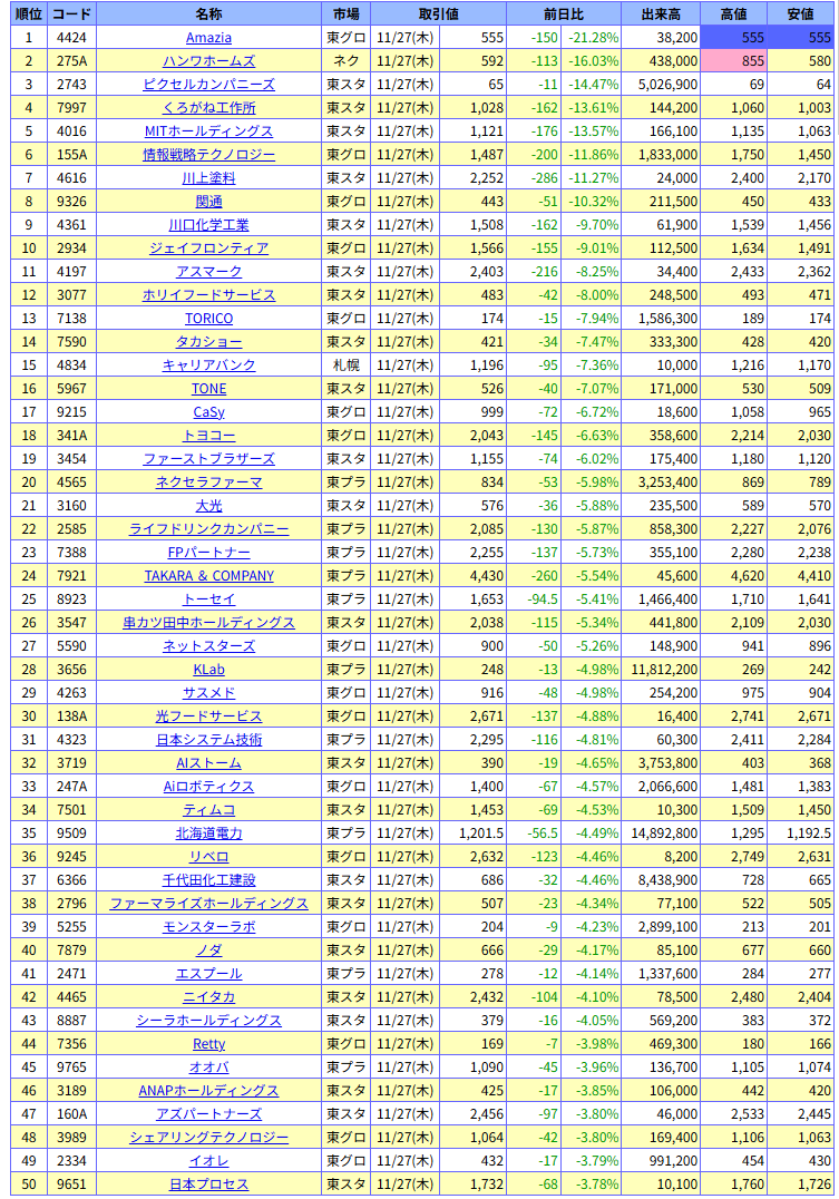 値下がり率ランキング