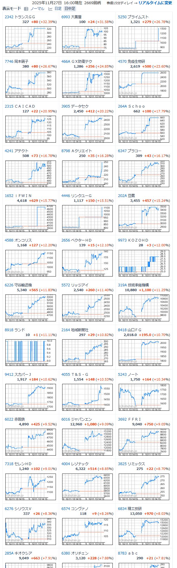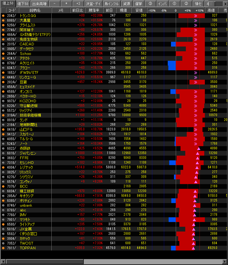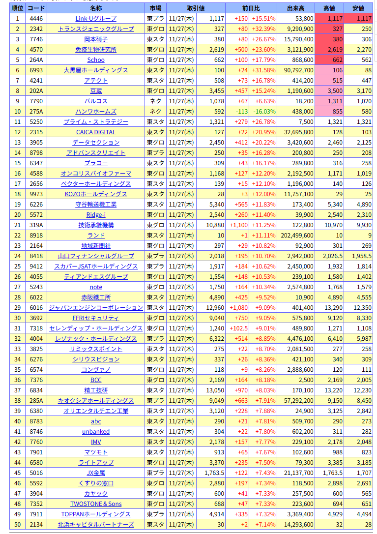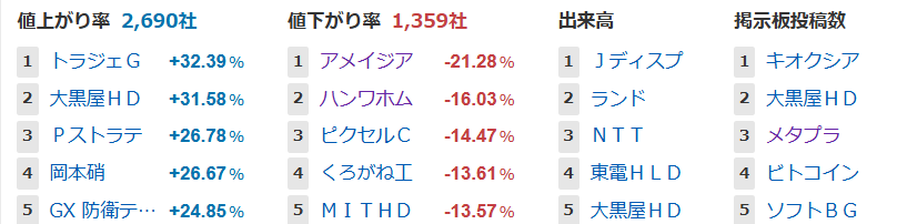 値上がり率ランキング