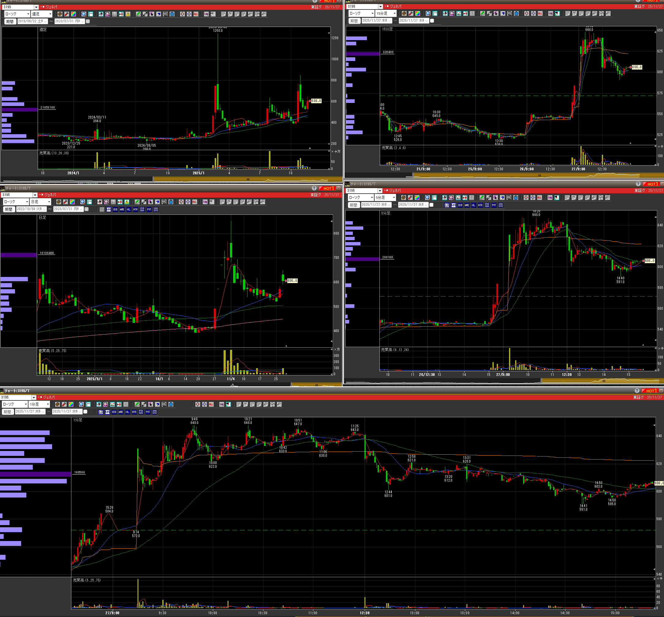 ・物色されてる時とそうでない時の商いの差が激しく、一旦損切(まだ玉はあります)
