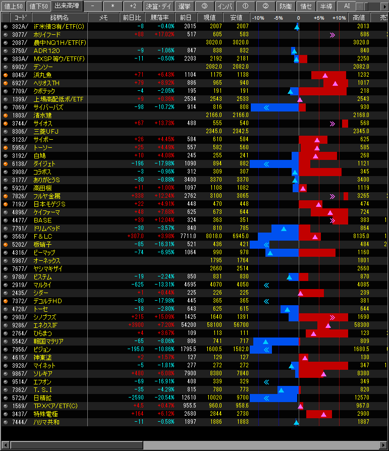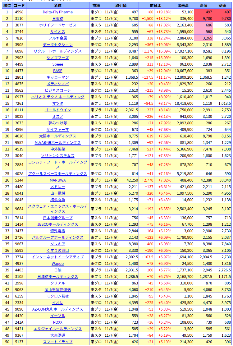三菱重、ホンダ、フジクラ、三井不、クボタ、オリンパス、ユニチャーム、清水建、島津製、キッコーマン、千葉銀、しずおか、SGHD、東センチュリー、オムロン、東急不HD、F&LC、王子HD、ホシザキ、マクドナルド、リコー、八十二、マツダ、いよぎん、栗田工、セガサミーHD、ホトニクス、洋缶HD、コムシスHD、IIJ、エクシオG、空港ビル、関西ペ、フジテック、ライオン、ニッコンHD、第四北越、五洋建、メルカリ、芙蓉リース、ヨネックス、京阪HD、セブン銀行、名鉄、ラウンドワン、シンフォニア、安藤ハザマ、ポーラオルHD、ダイダン、三井倉HD、ジャストシステ、日触媒、リンテック、阪和興、共立メンテ