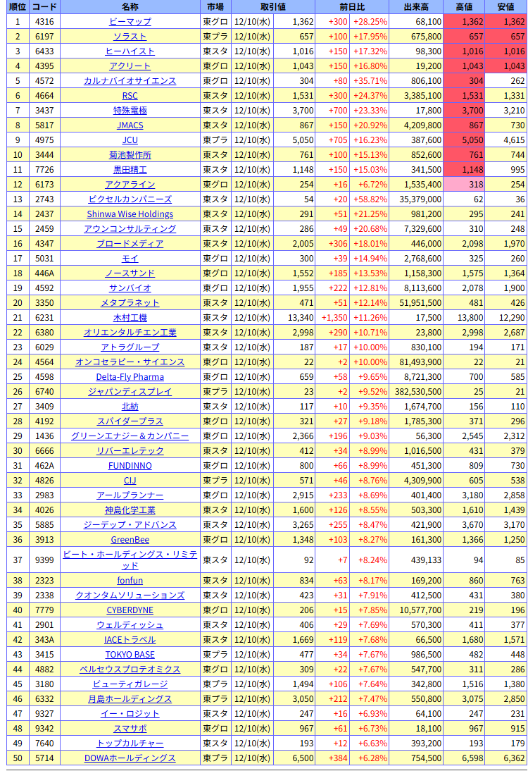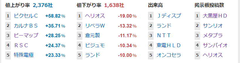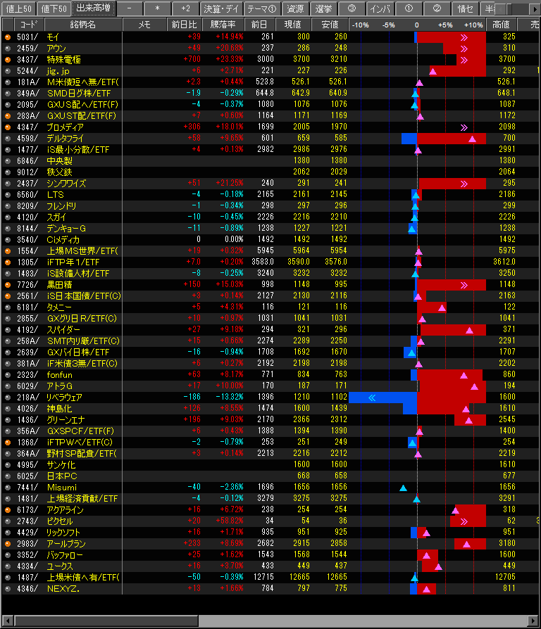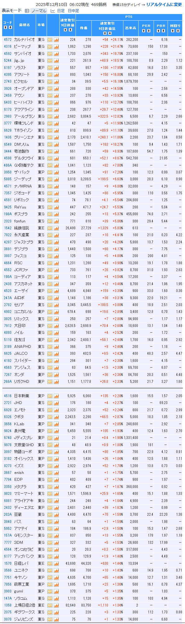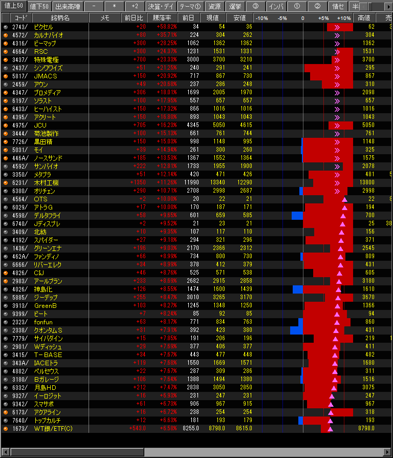 ・昨日のPTSはストップ高でしたが、やはりザラバは違う