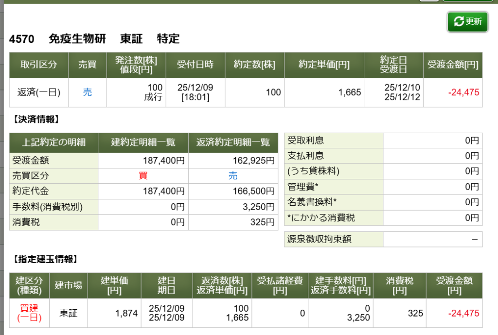 ・昨日持ち越したのを運よくリカク➡売った所から20円下で買い直し