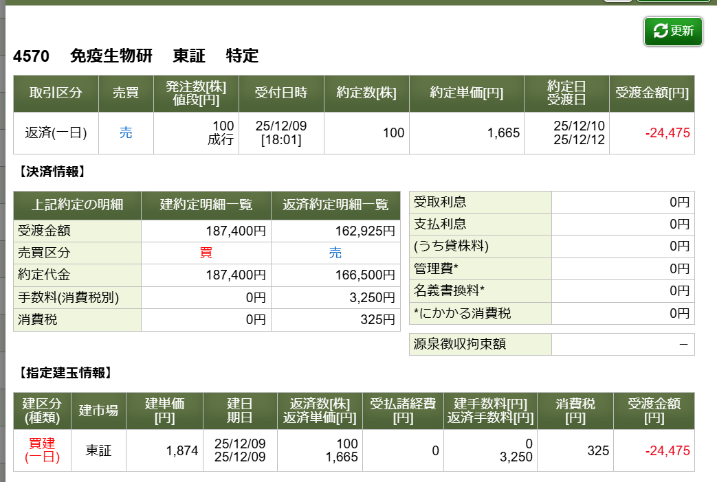 ・昨日の一日信用持ち越し分の強制決済スタート➡回収成功