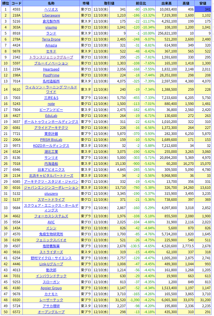 ANYCOLOR、くら寿司、テンポスHD、サトウ食品、pluszero、リベラウェア、あさくま、ステムリム、神島化、トビラシステム、大盛工業、ベステラ、浜木綿、Casa、ユークス、モイ、ハウテレビ、ベストワン