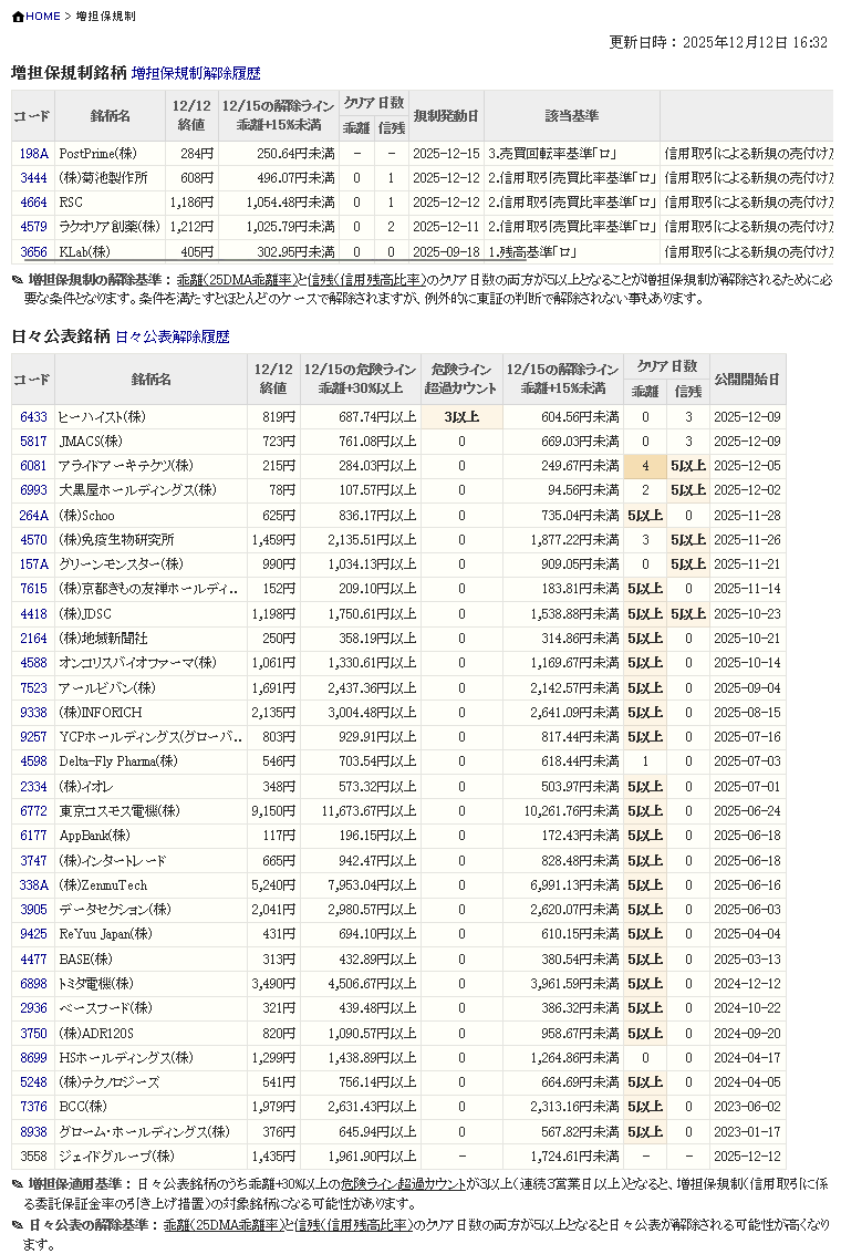 増し担保解除ライン&日々公表