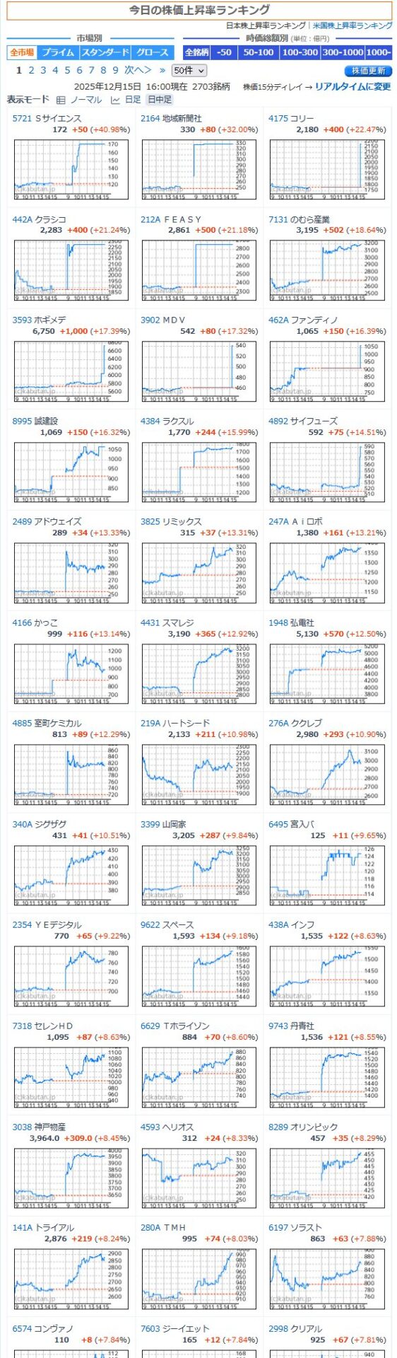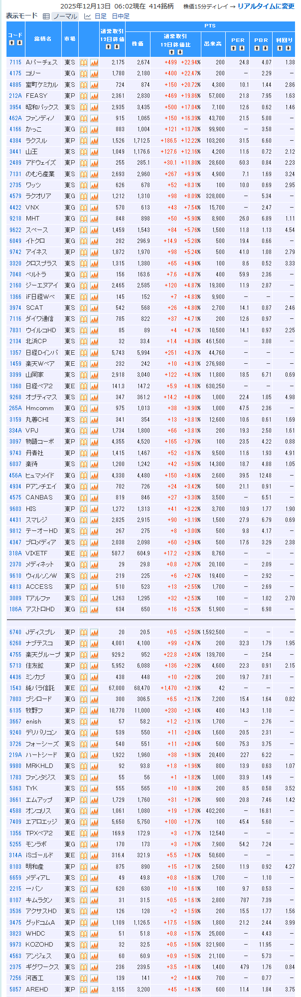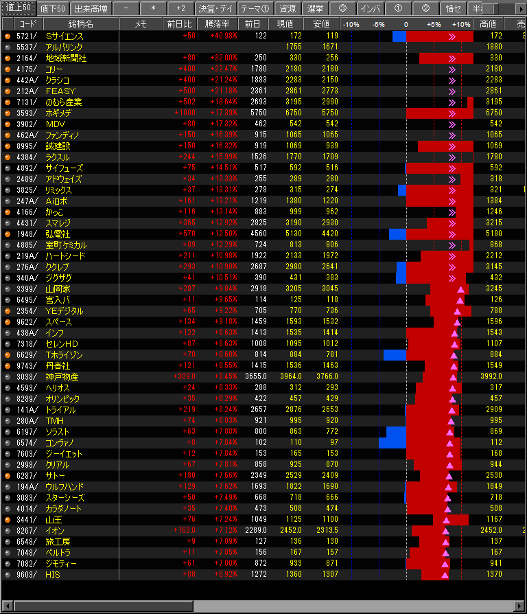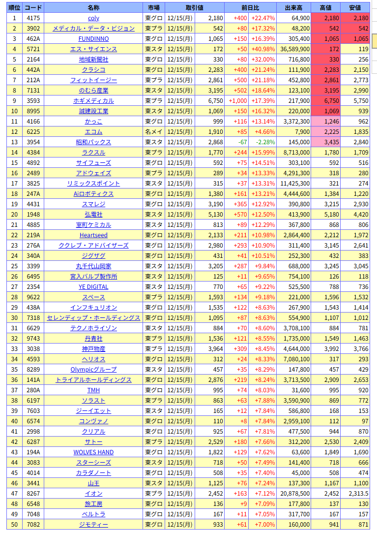値上がり率ランキング