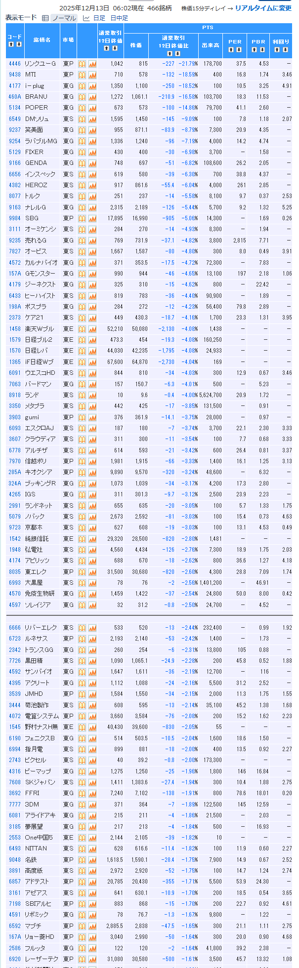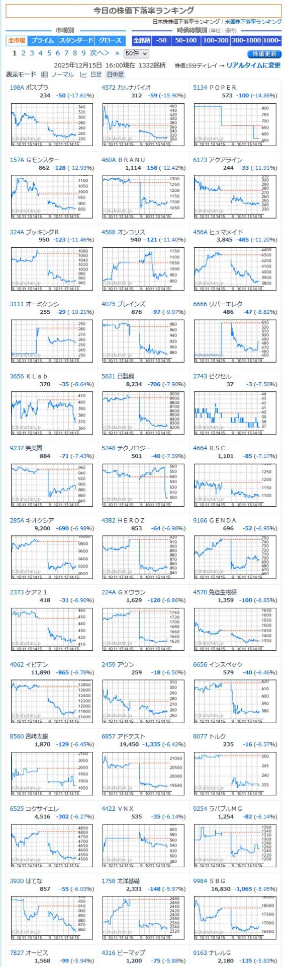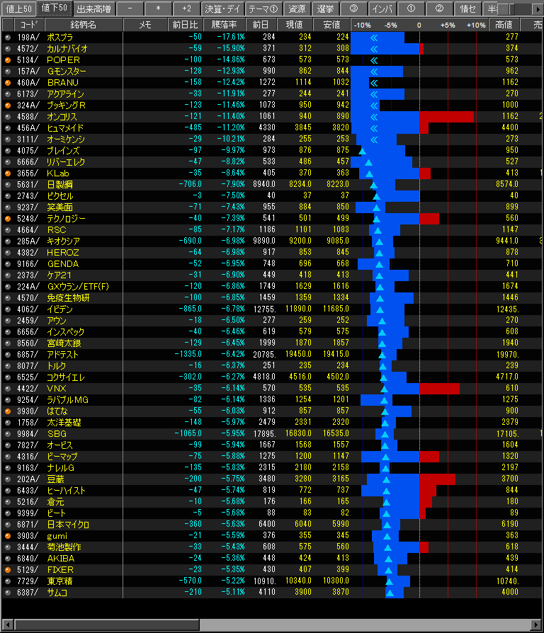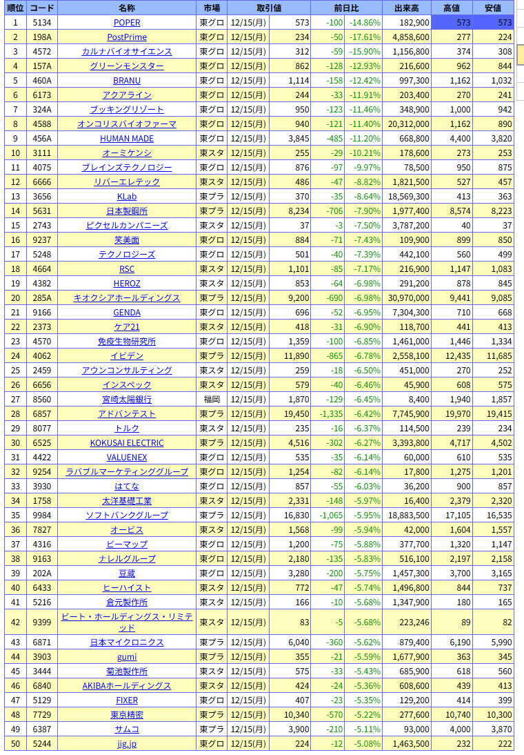 値下がり率ランキング