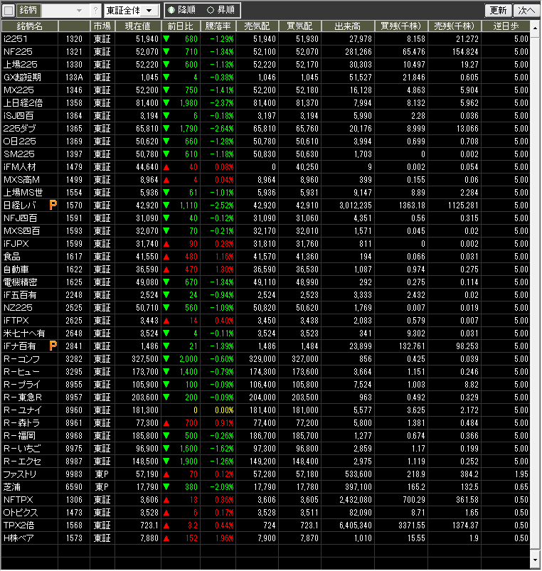 当日のザラ場指数