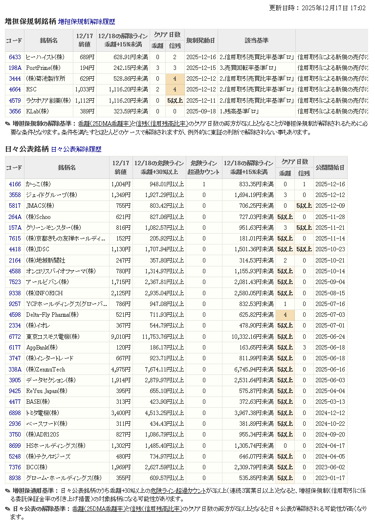 増し担保解除ライン&日々公表