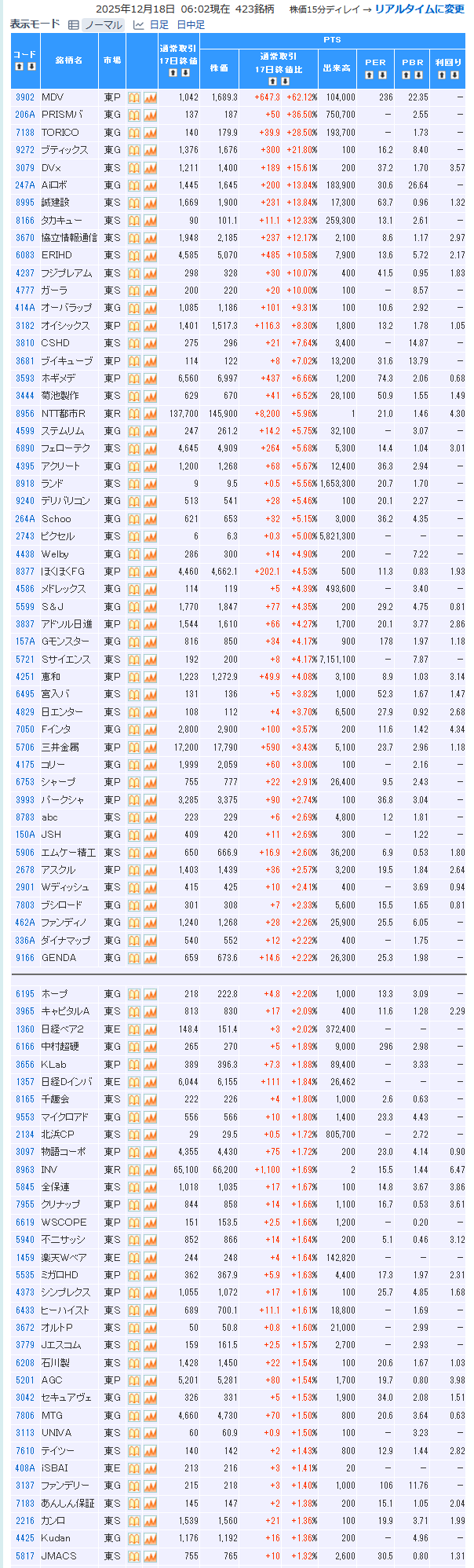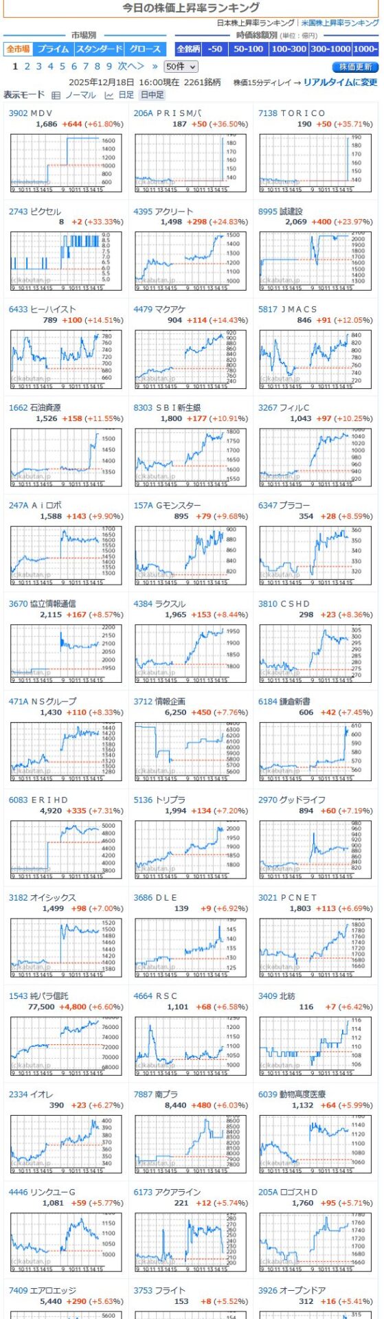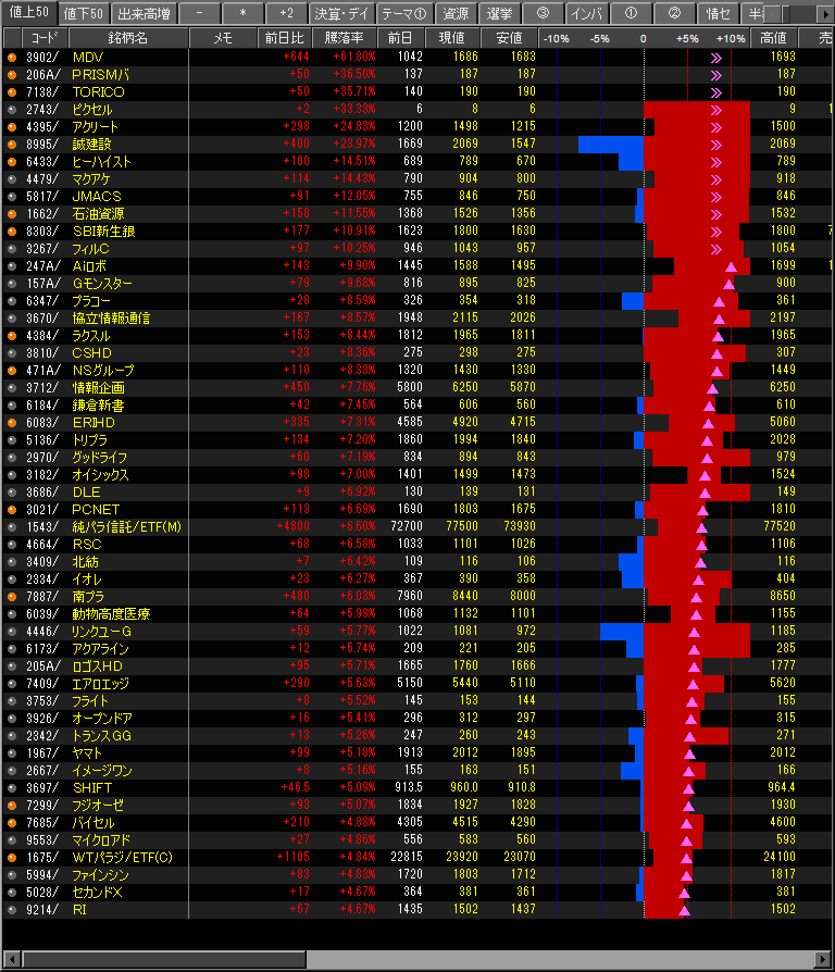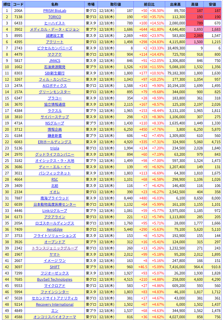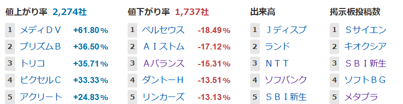値上がり率ランキング